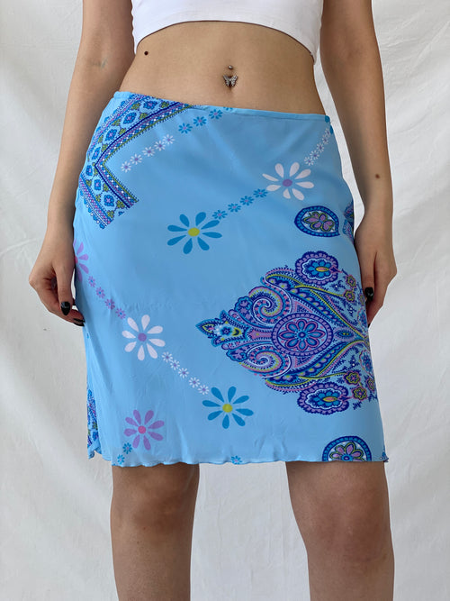 Cute Vintage Y2K D.B.Y. Blue Floral Midi Asymmetrical Hem Dress - S -
