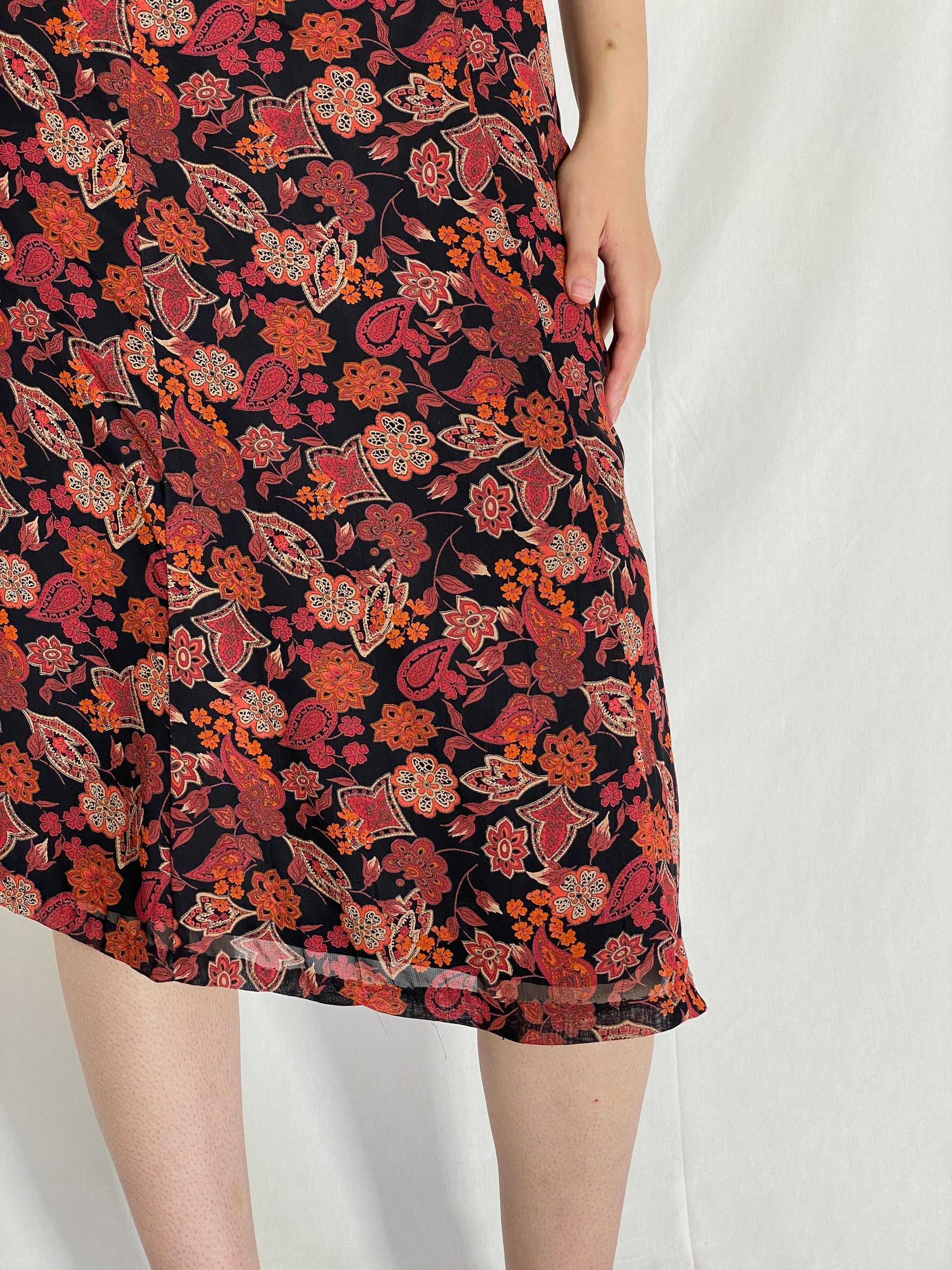 Vintage 90s Your 6th Sense Floral Red Black Paisley Boho Midi Skirt - L