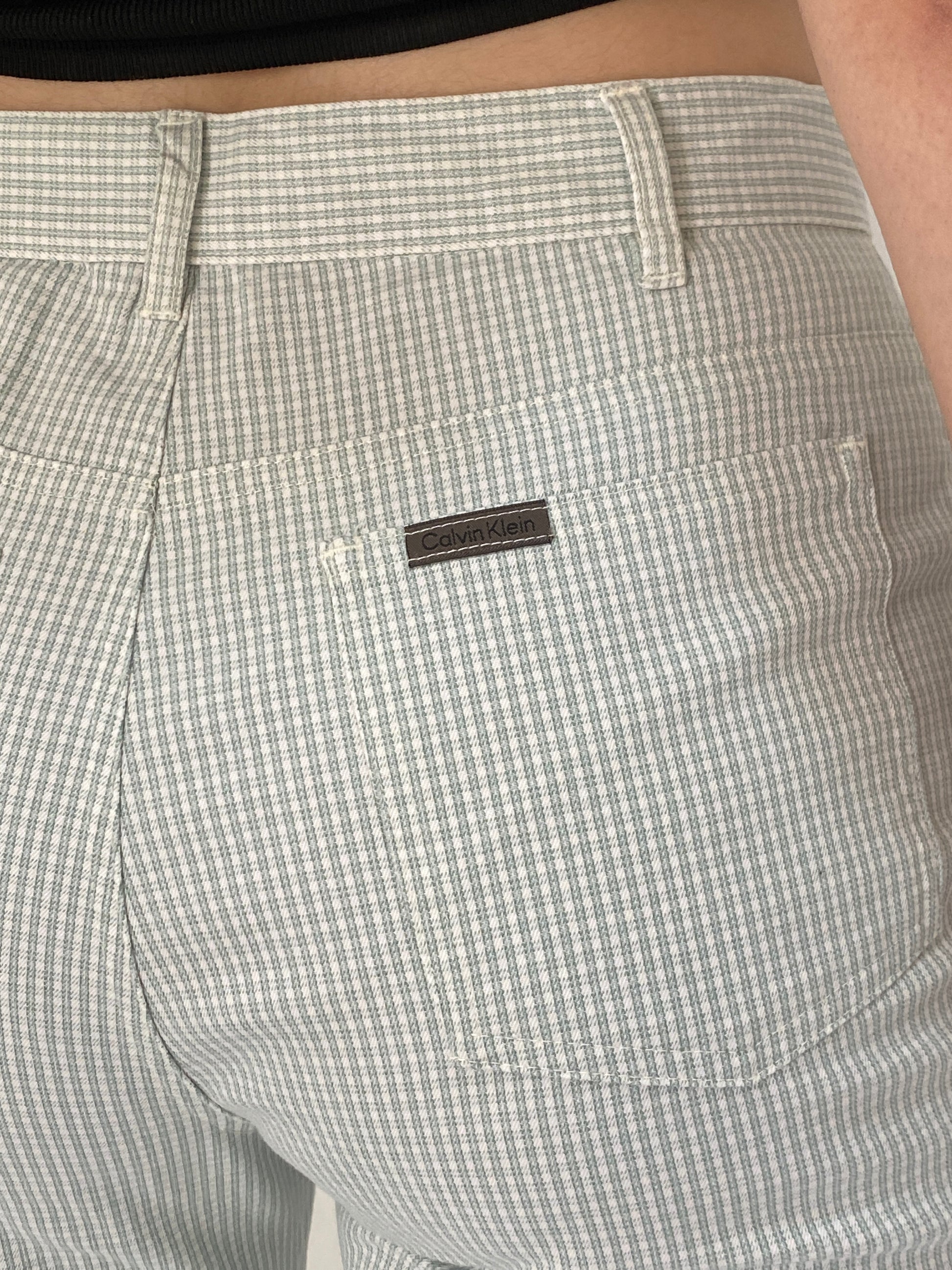 A timeless wardrobe staple with a clean tailored silhouette. These vintage Calvin Klein checkered pants feature a subtle micro-check pattern, slim straight leg, and mid-rise fit that works effortlessly for office looks or everyday minimal styling.