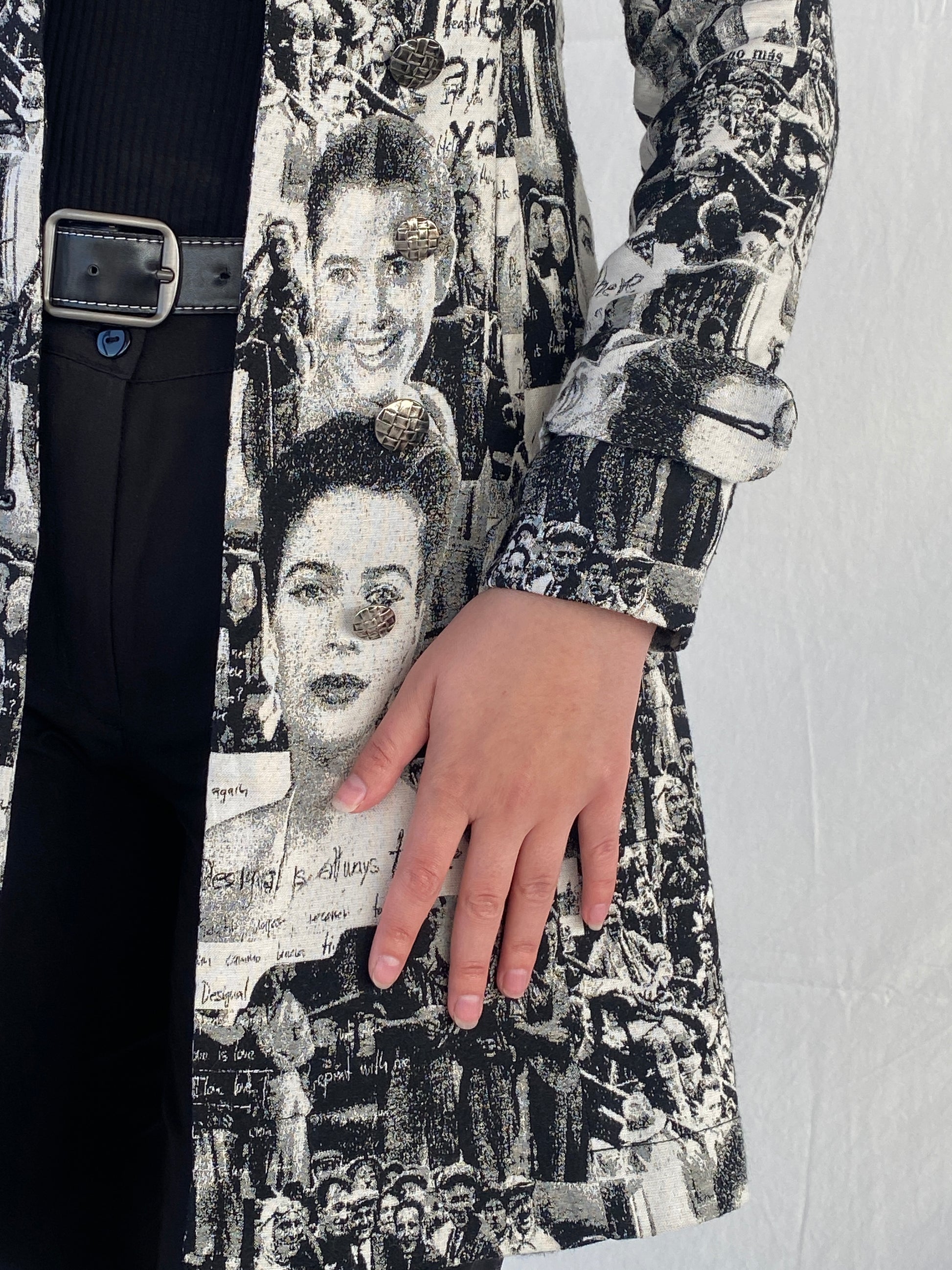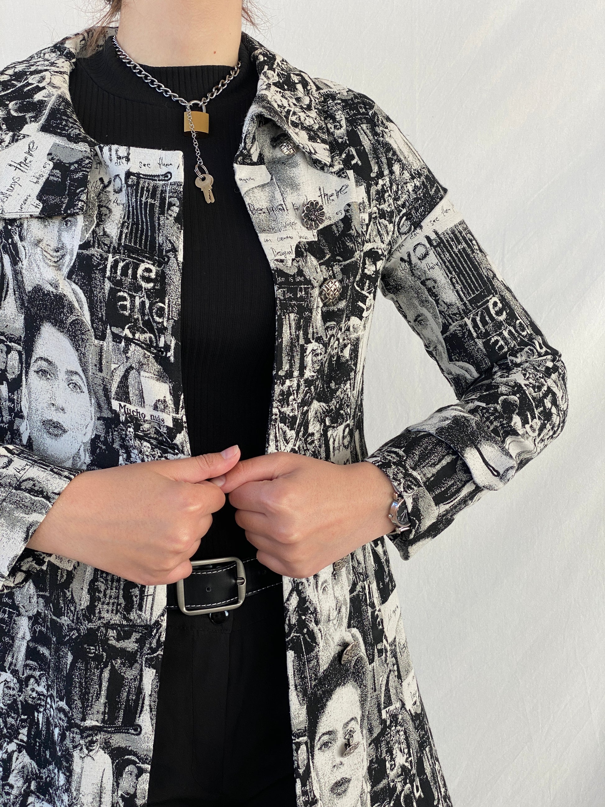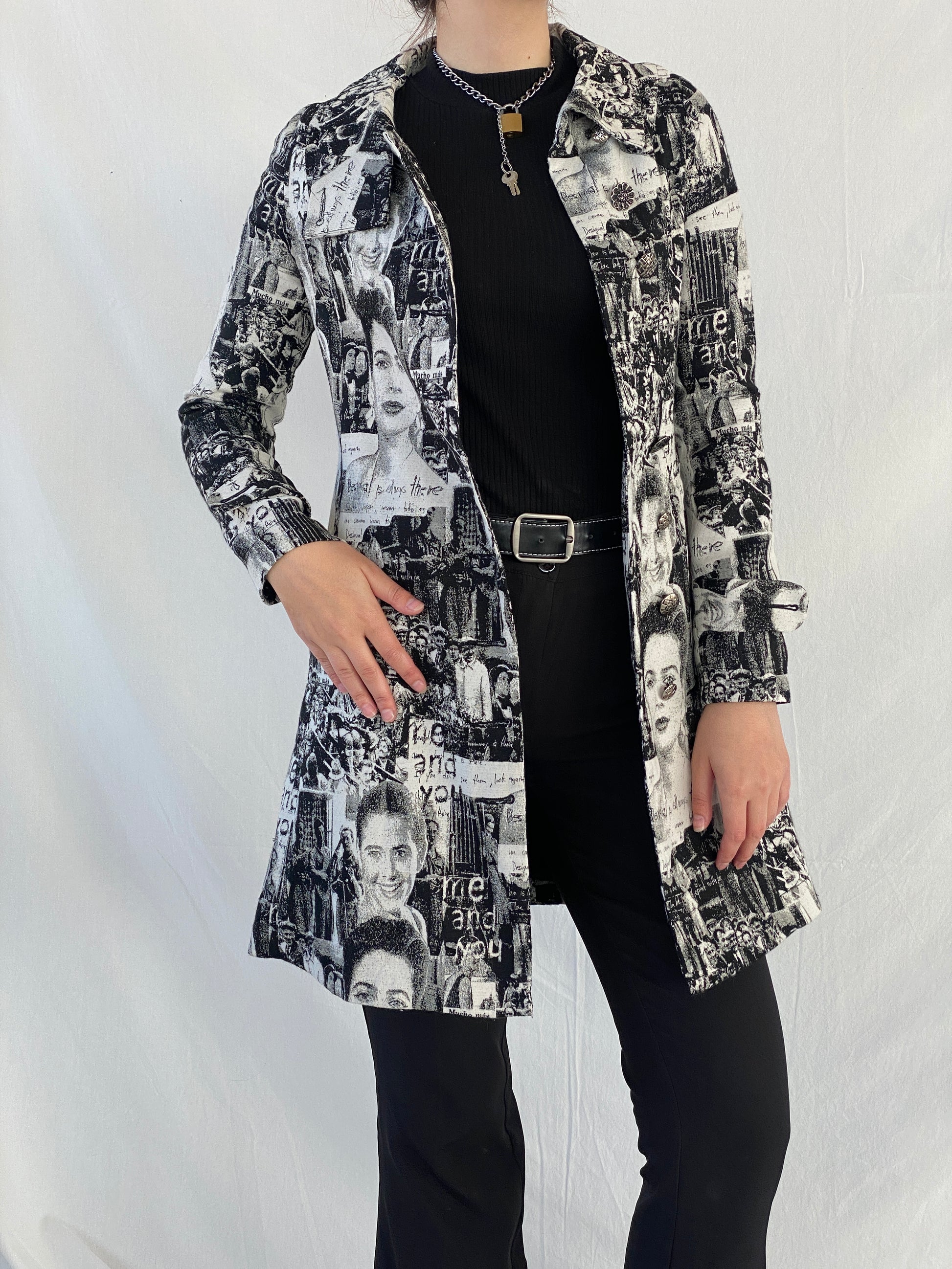 Statement Desigual Graphic Black and White Women’s Trench Coat - M