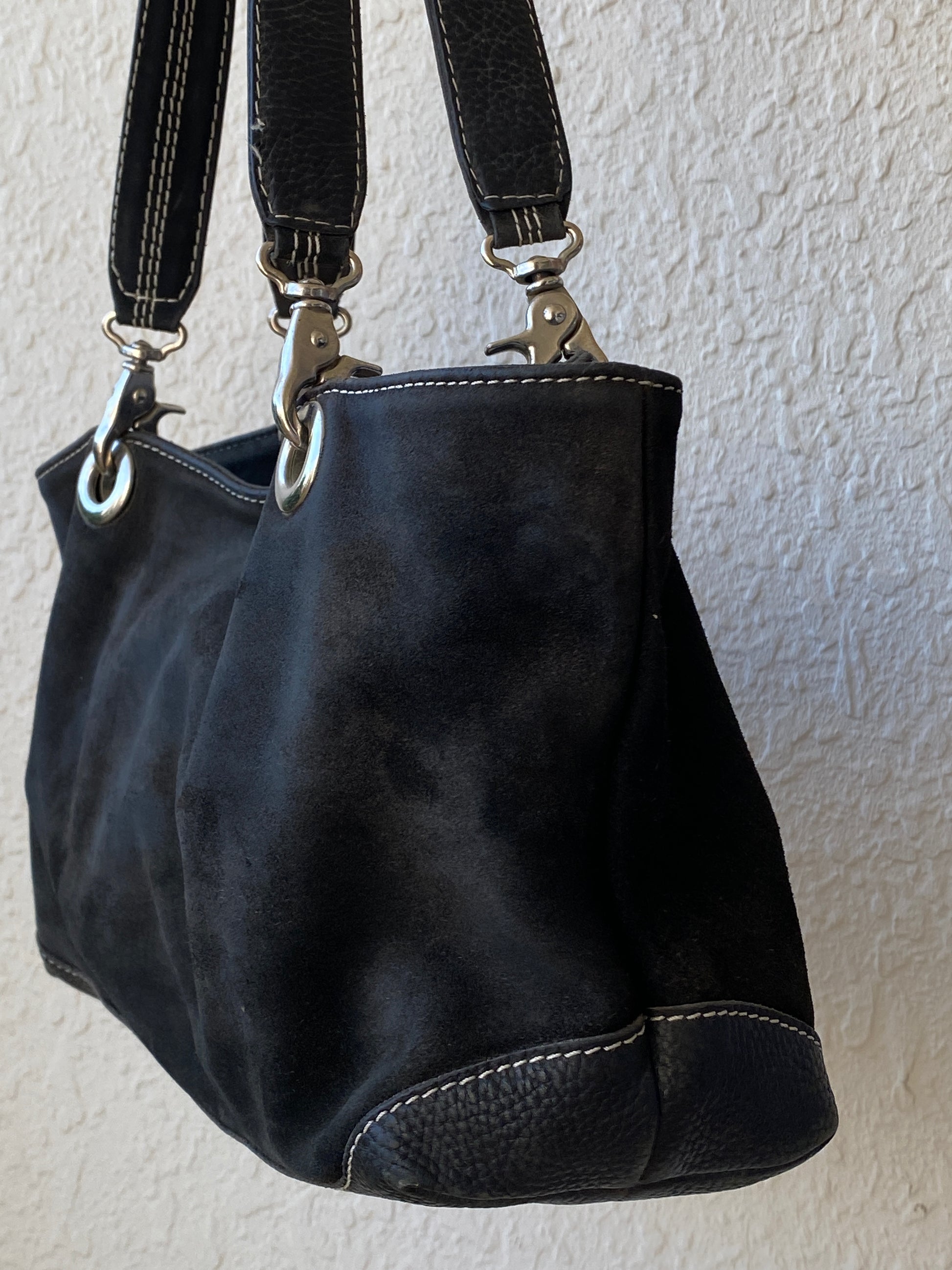 J.Jill suede shoulder bag, black suede handbag, suede and leather tote, J.Jill purse, black suede tote bag, pre-loved suede bag, women’s shoulder bag, medium suede handbag, classic suede tote, genuine suede purse
