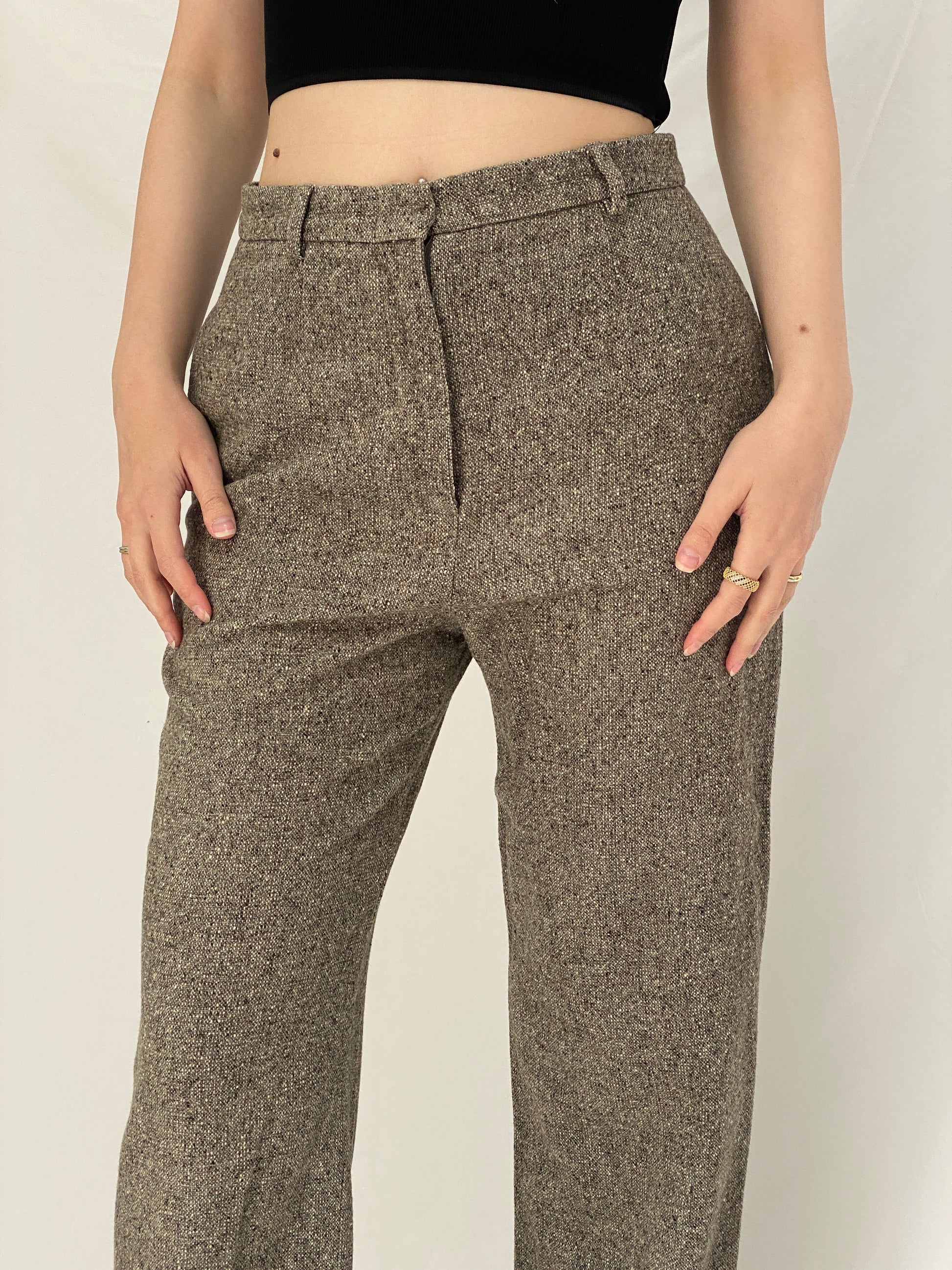 max mara trousers, vintage max mara pants, wool silk trousers, brown tweed pants, tailored winter trousers, high waist office pants, italian designer vintage, minimalist workwear, luxury wool pants