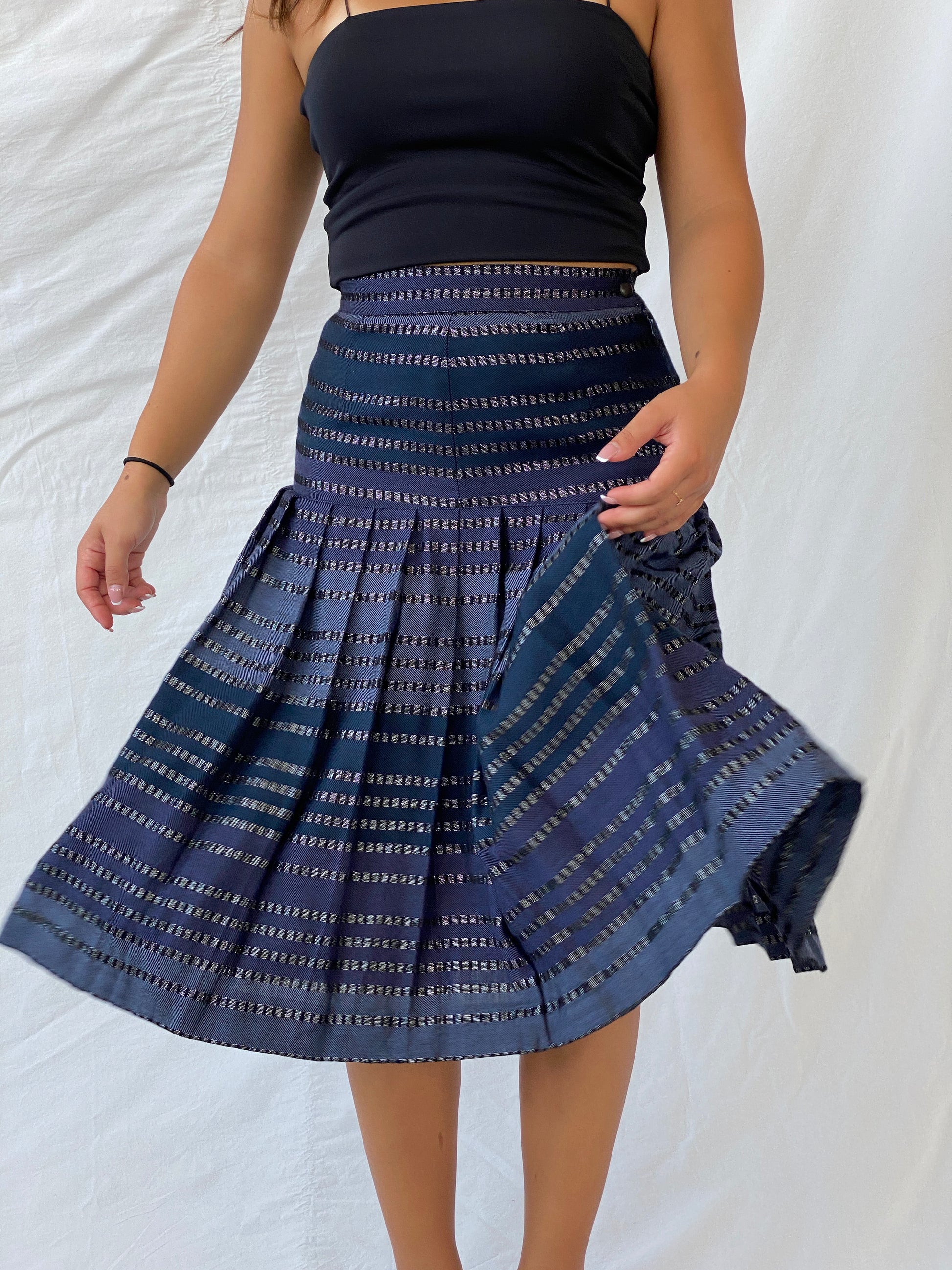 Vintage Carla Carini Blue And Black Pleated Midi Skirt - S