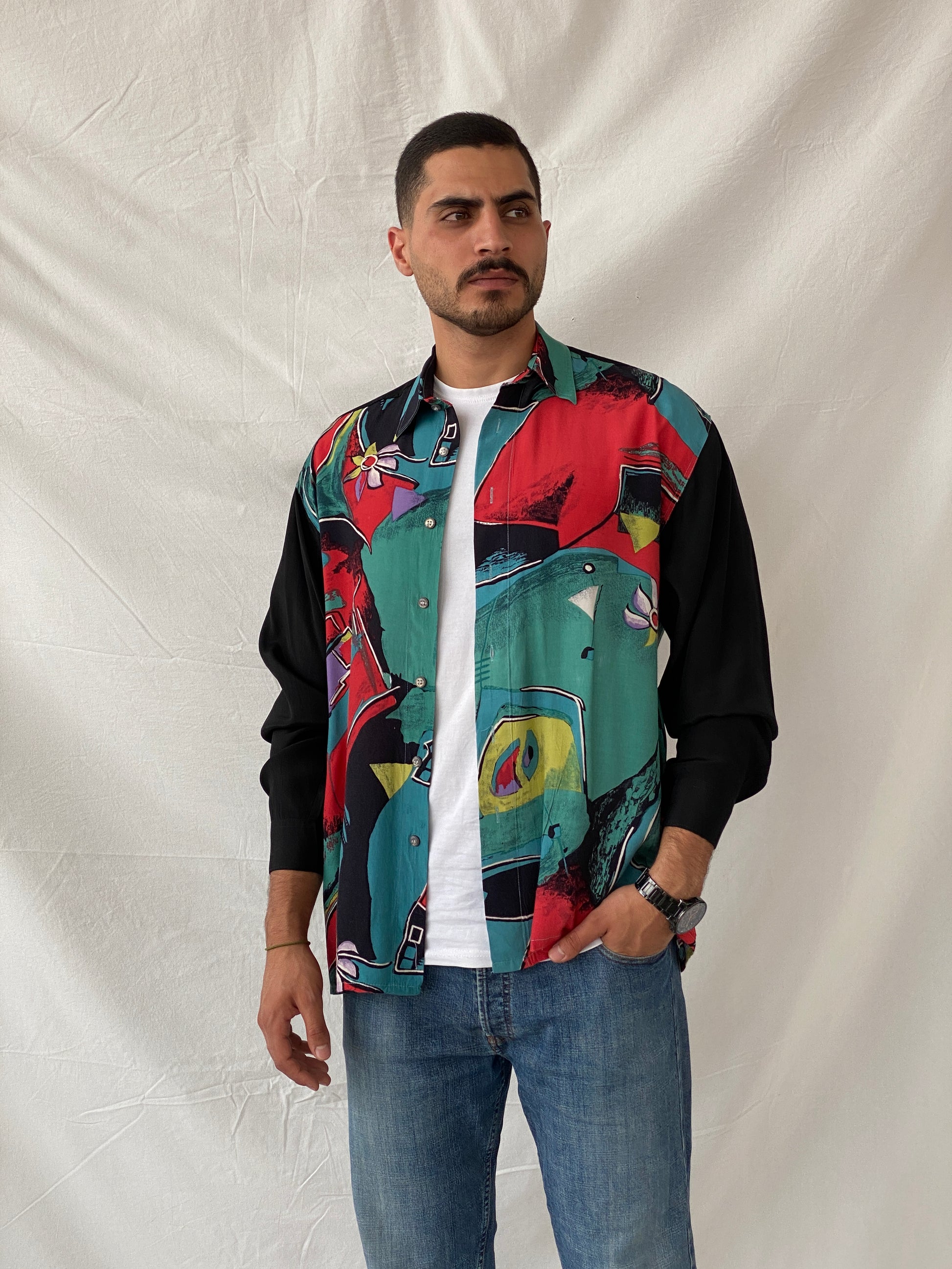 Elevate your style with our Vintage Golfer’s Club Shirt! This 90s button up features a bold floral green and red print and full sleeves, making it perfect for a night out or casual wear. Look effortlessly cool and stand out from the crowd.