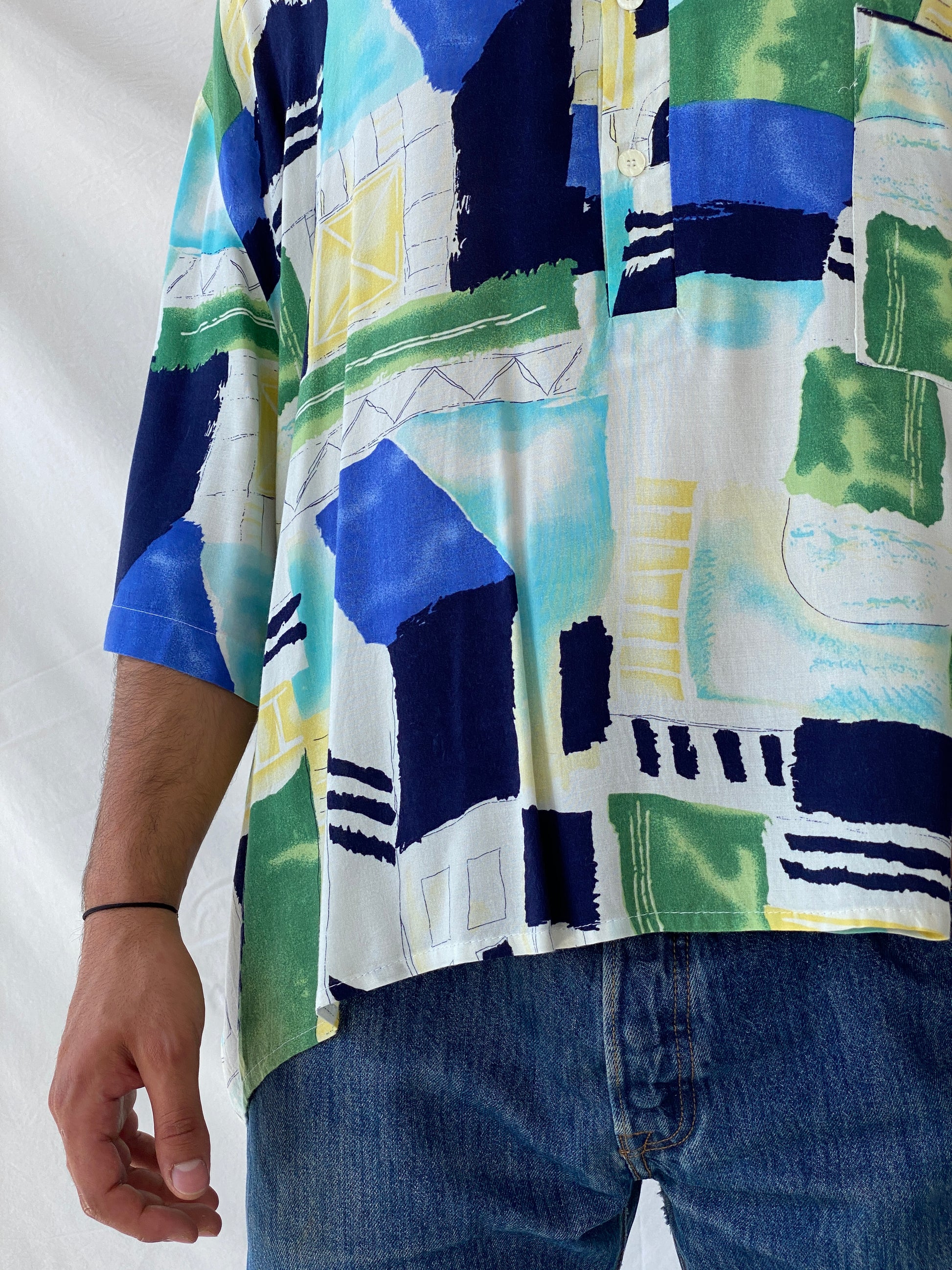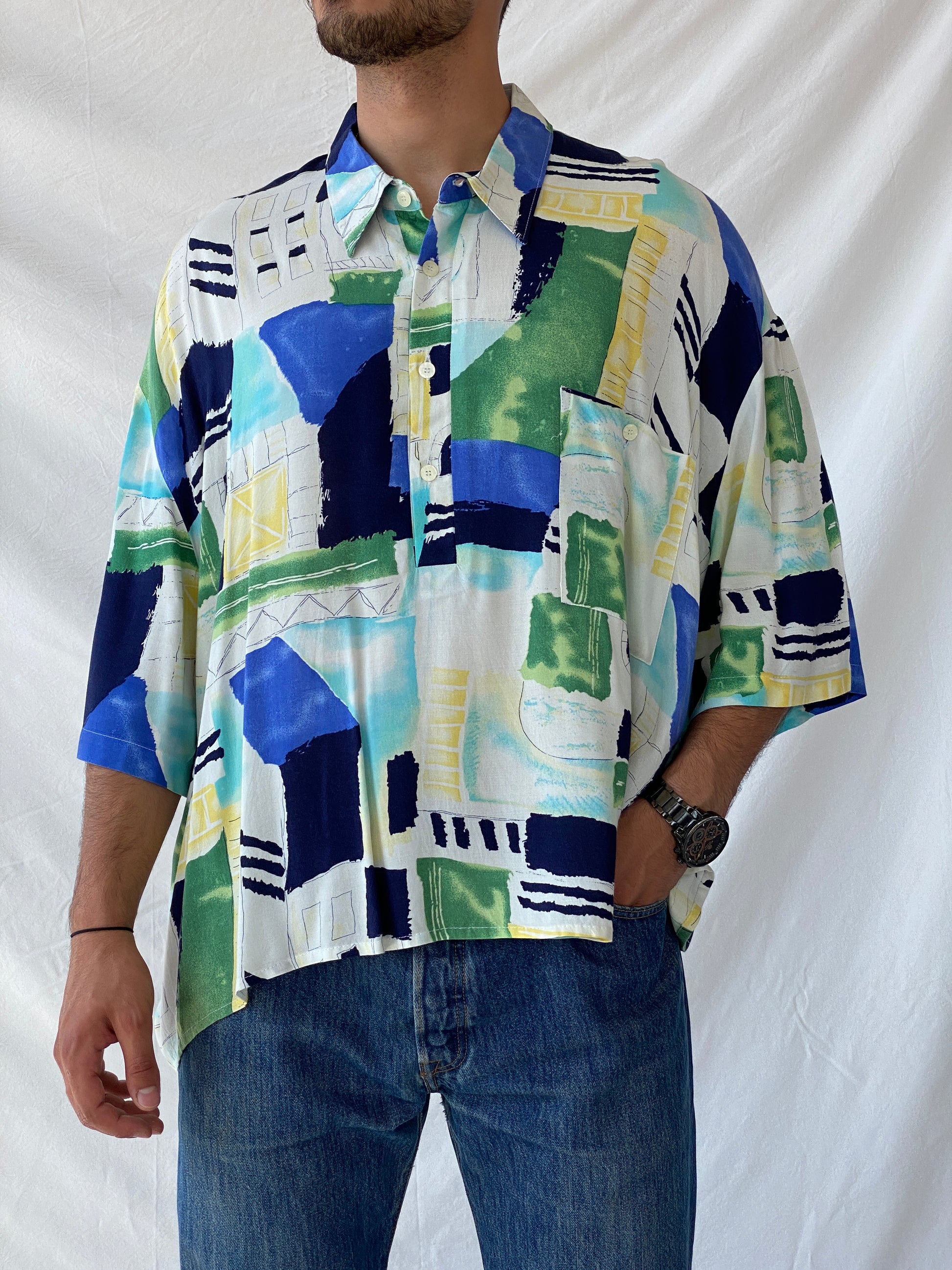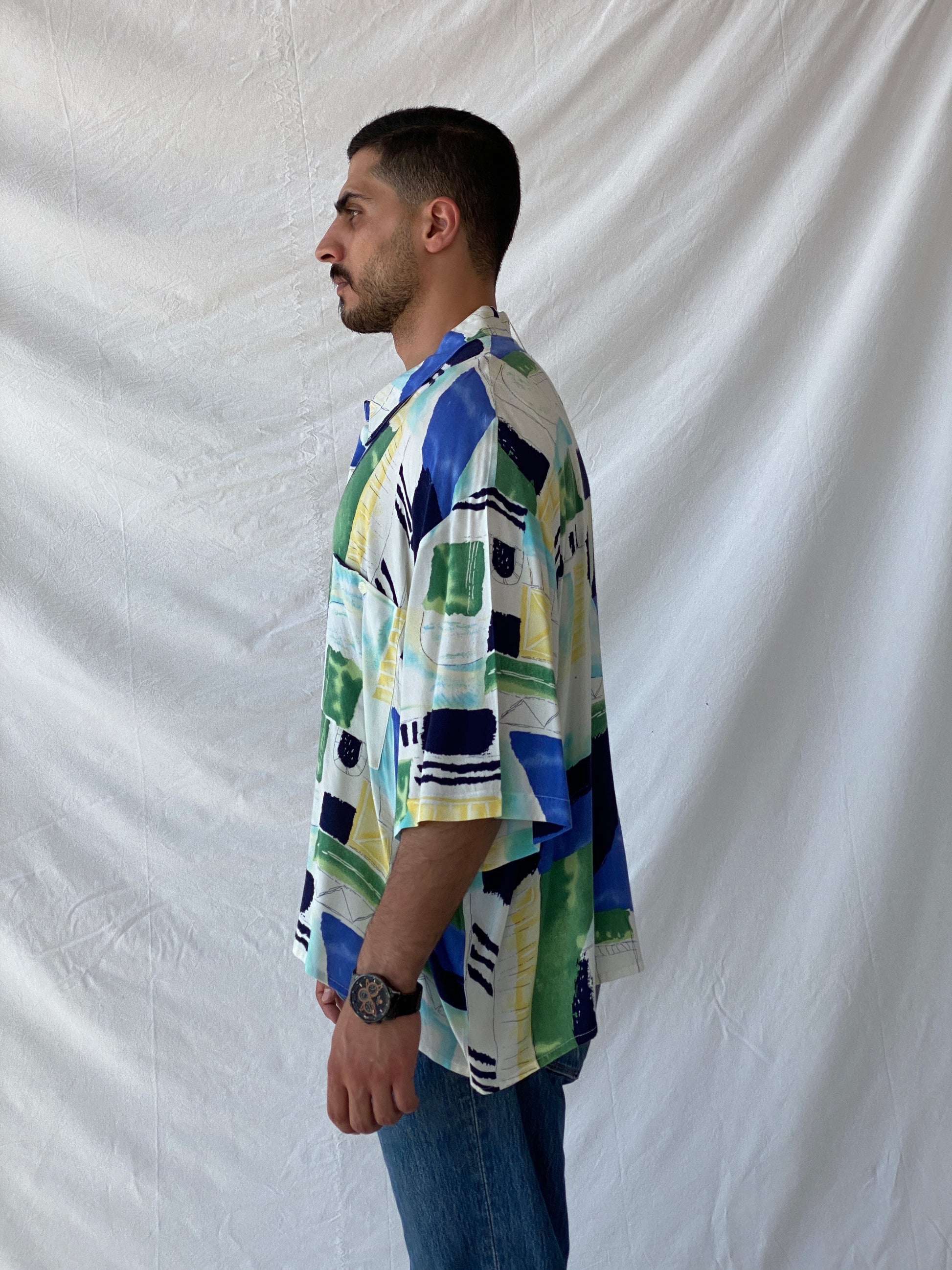 Vintage 90s Streetwear Alan Stuart Cropped Abstract Print Men’s Short Sleeve Polo Shirt - 2XL