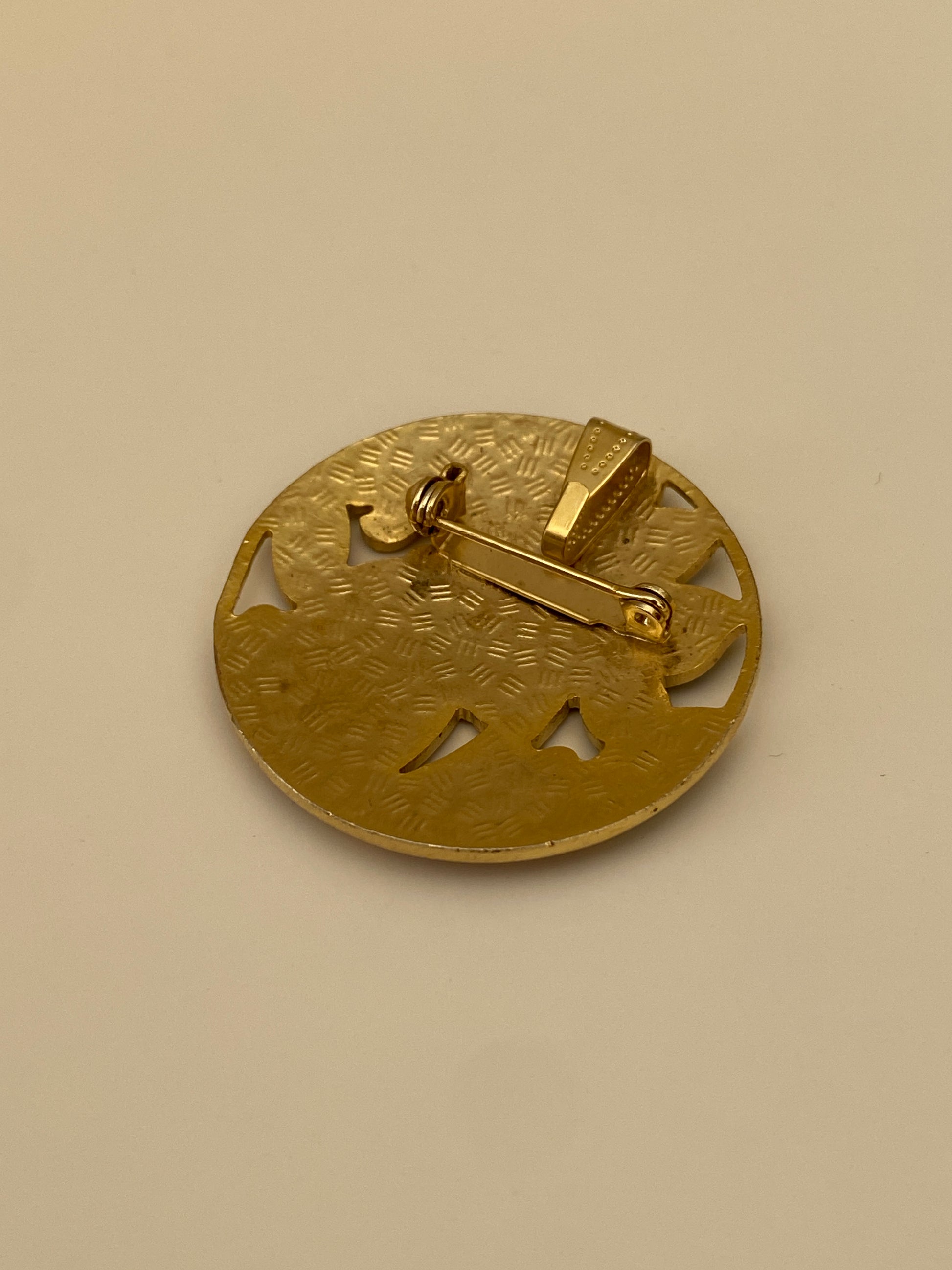 - Closure: Pin back (possible pendant use)