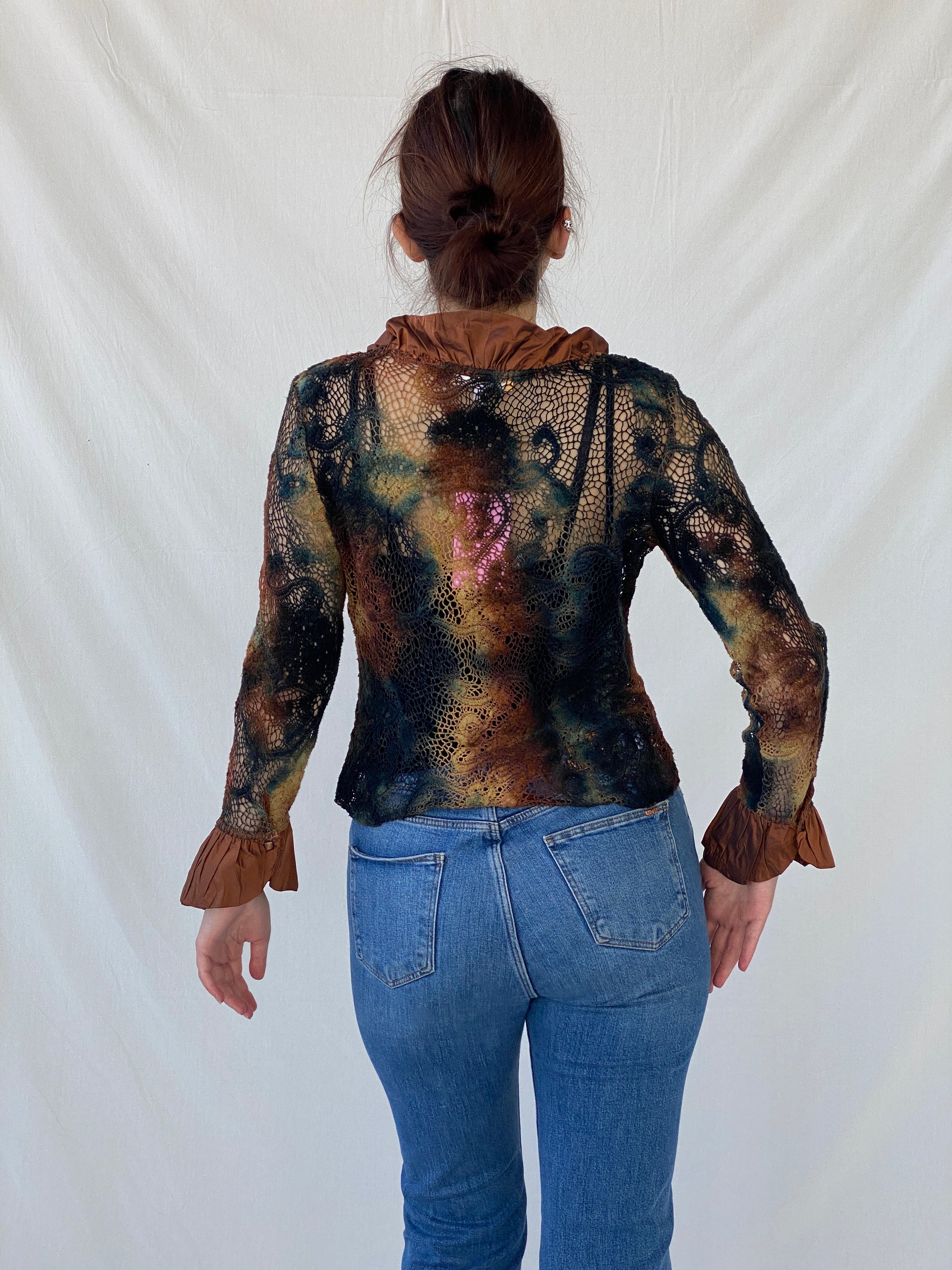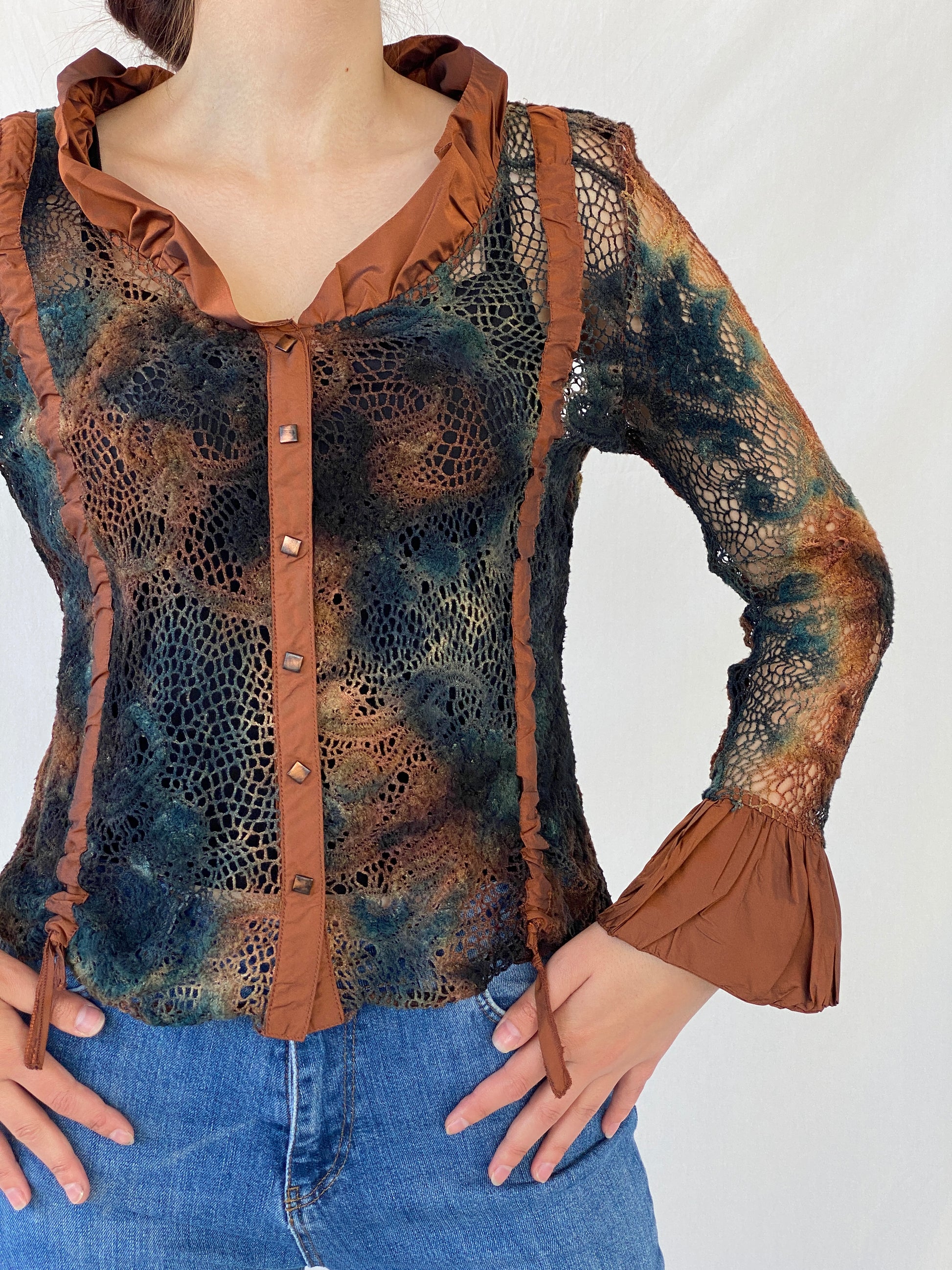 Vintage BIBA Brown Camo Mesh Women’s Shirt - L