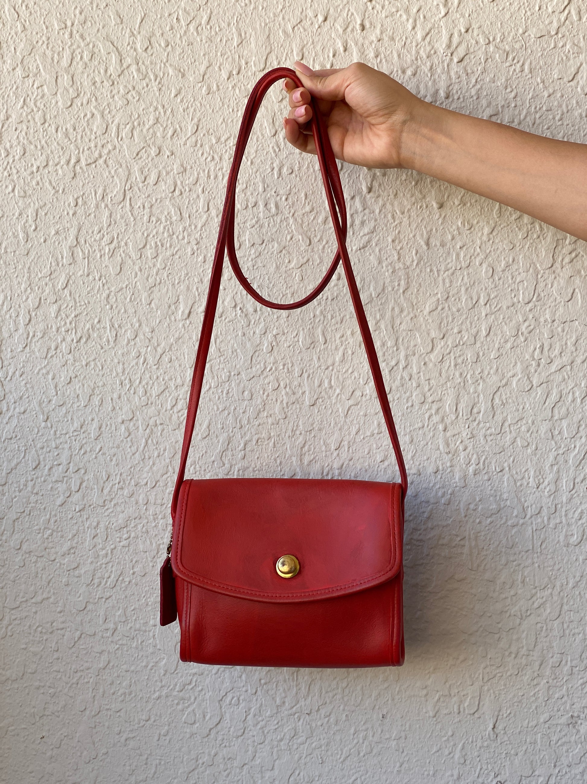 Elevate your style with the Vintage Classic Coach Chrystie Flap Red Leather Cross Body Bag! This rare and timeless piece will upgrade any outfit. With its classic design and luxurious leather, this bag is a must-have for any fashion-forward individual. Don't miss out on this statement piece!