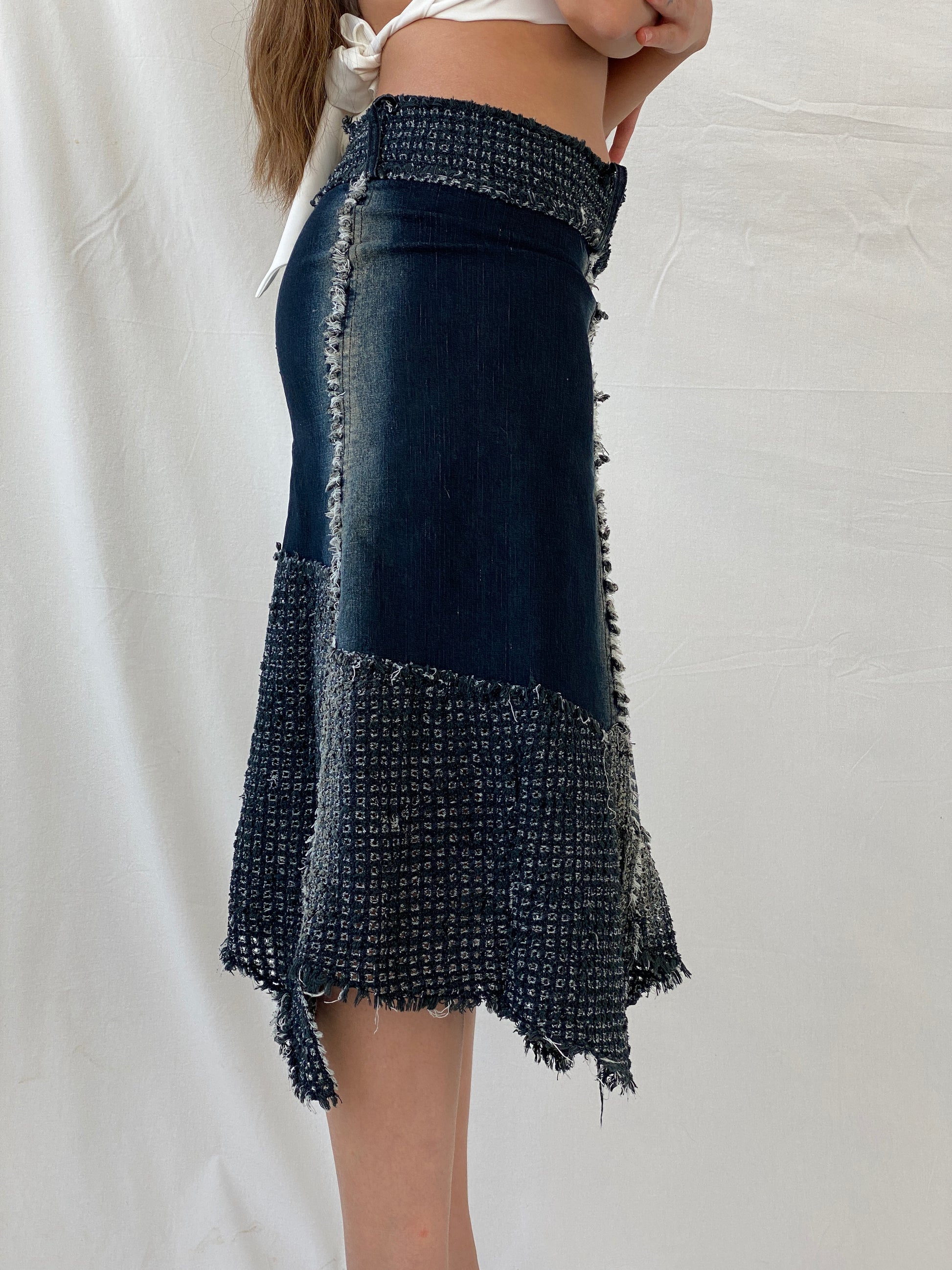 Vintage Denim Asymmetric Hem Midi Skirt - L