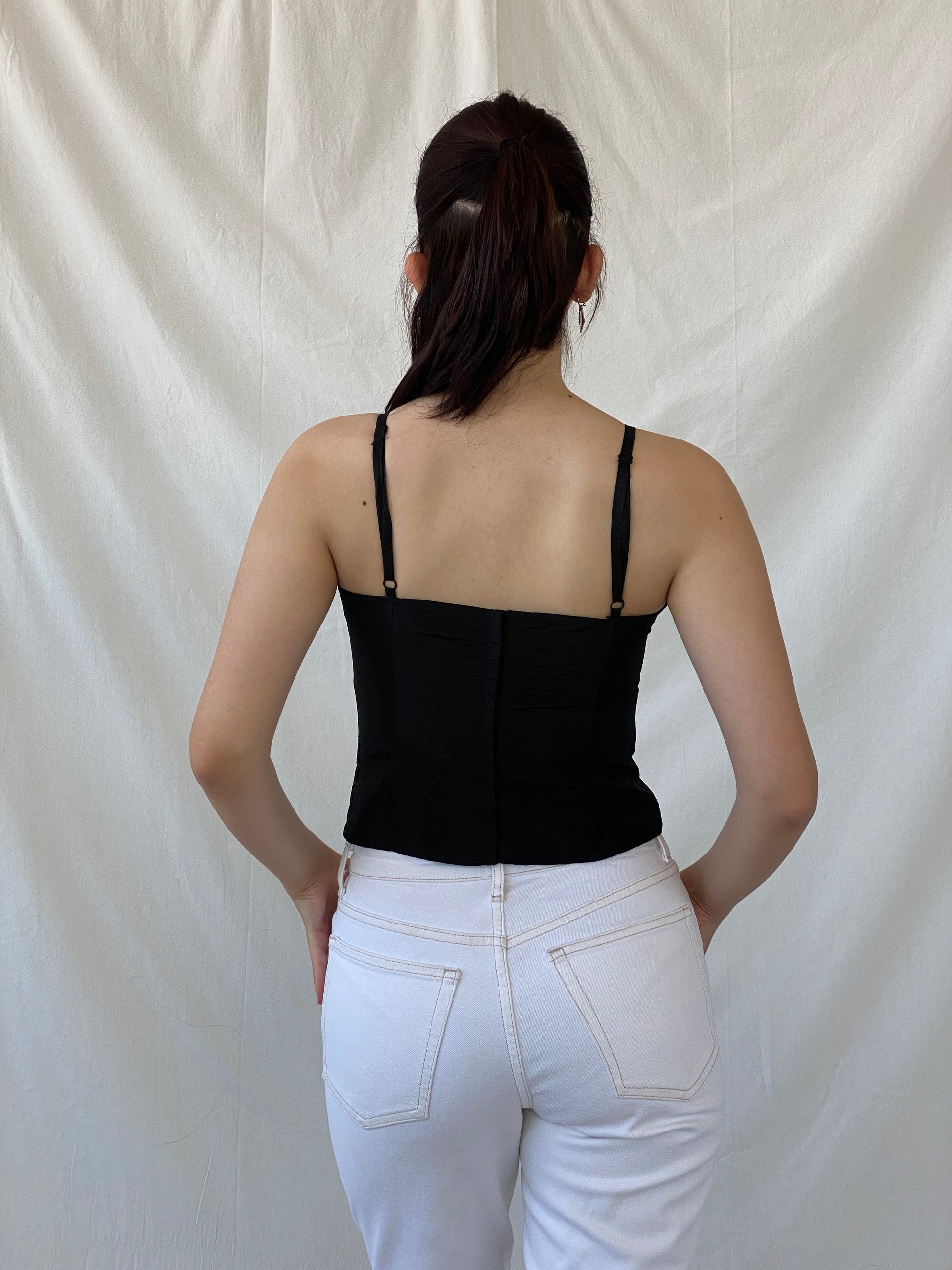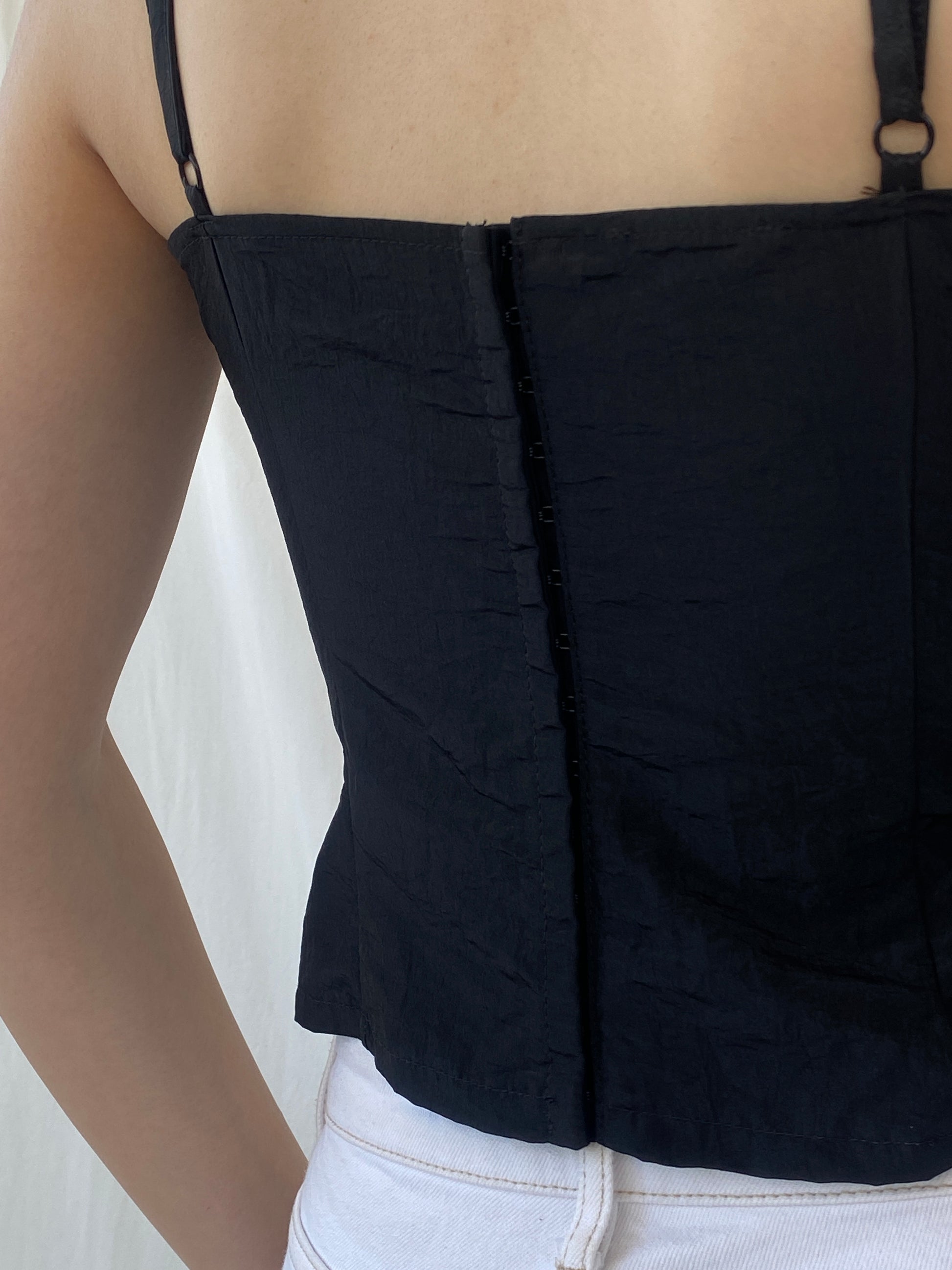 Vintage Display Black Cami Top Formal Ruched Camisole with Clasp Closure - S