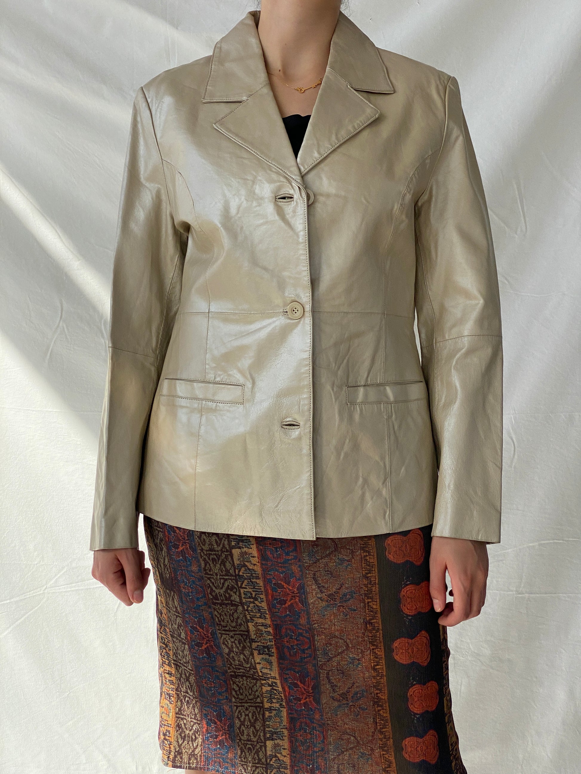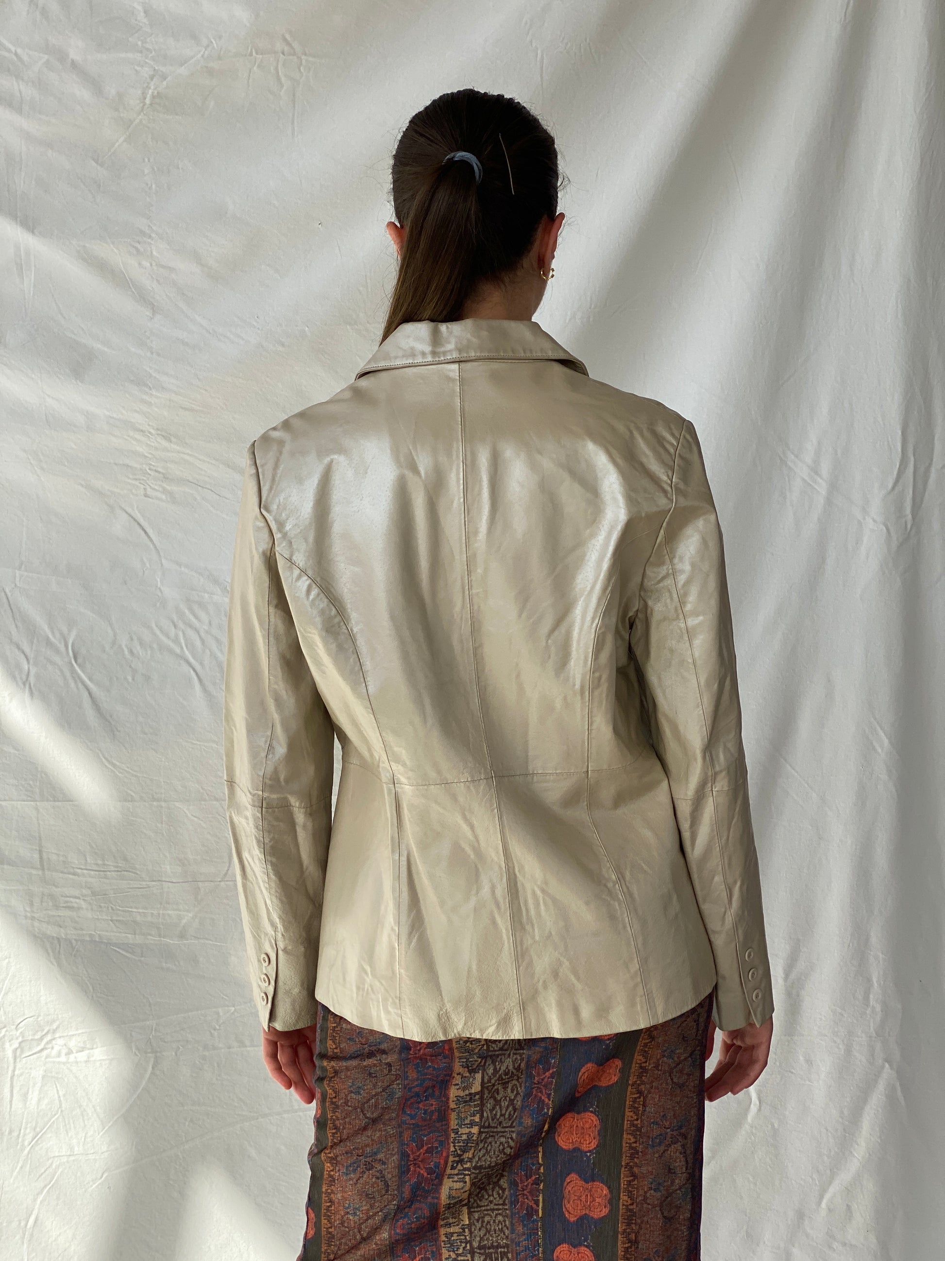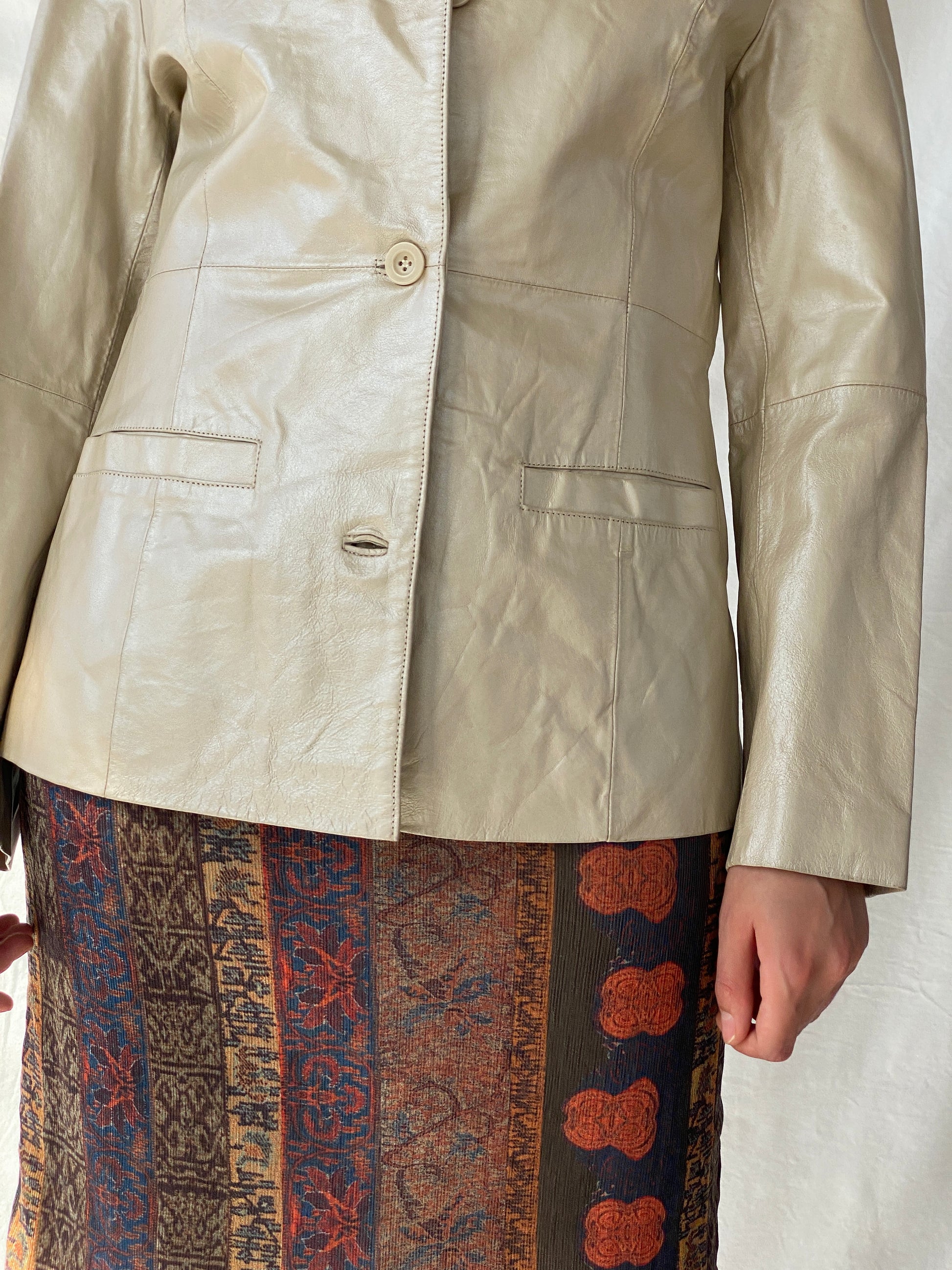 Transform your wardrobe with our Vintage Elements Cream Leather Jacket! Crafted with genuine leather, this essential piece will elevate your style game this season. Versatile and stylish, you can create endless looks with this must-have jacket. Channel your inner fashionista and make a statement with this stunning piece!