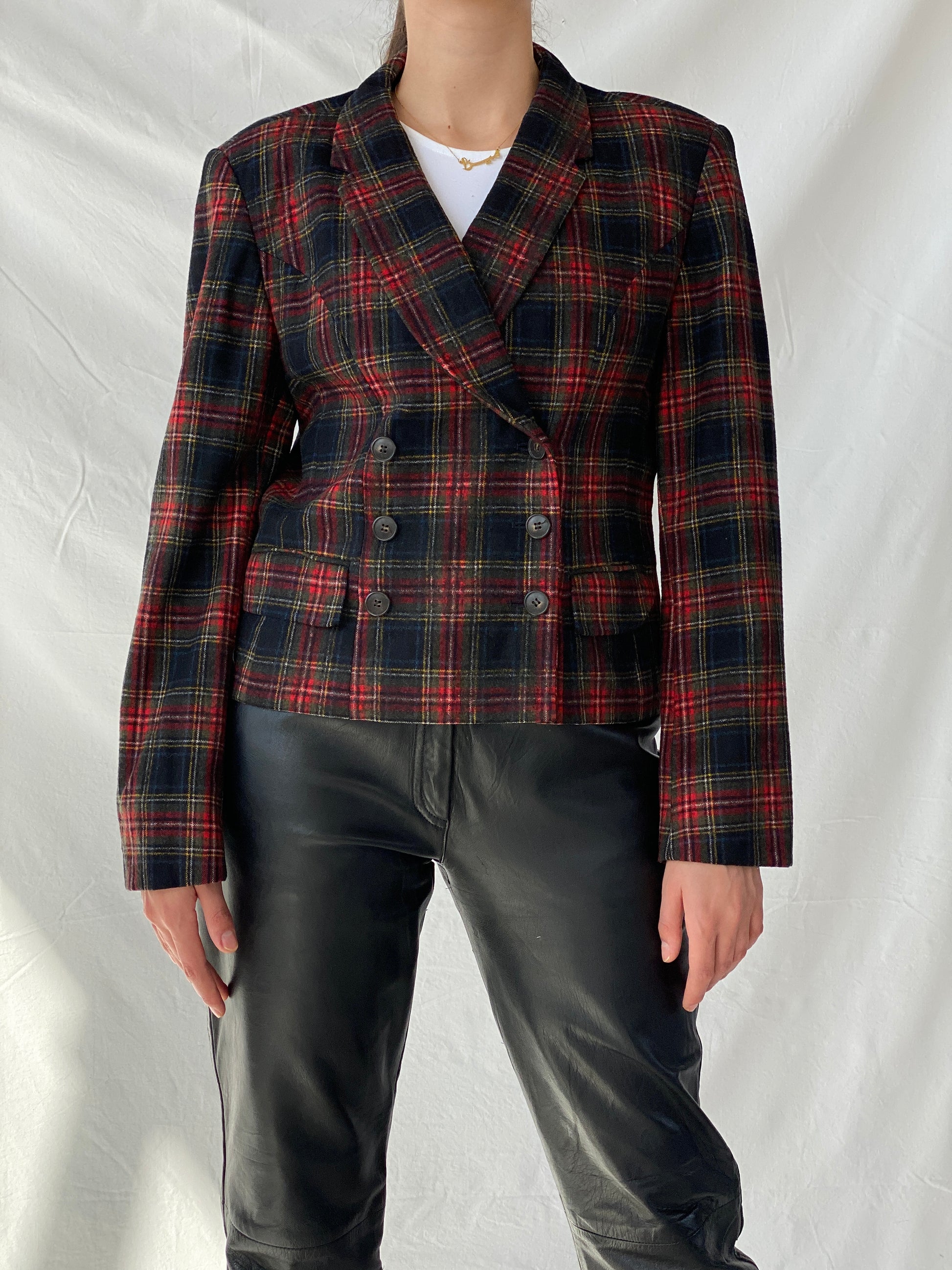 Vintage Far Hills Red Wool Plaid Short Blazer - L