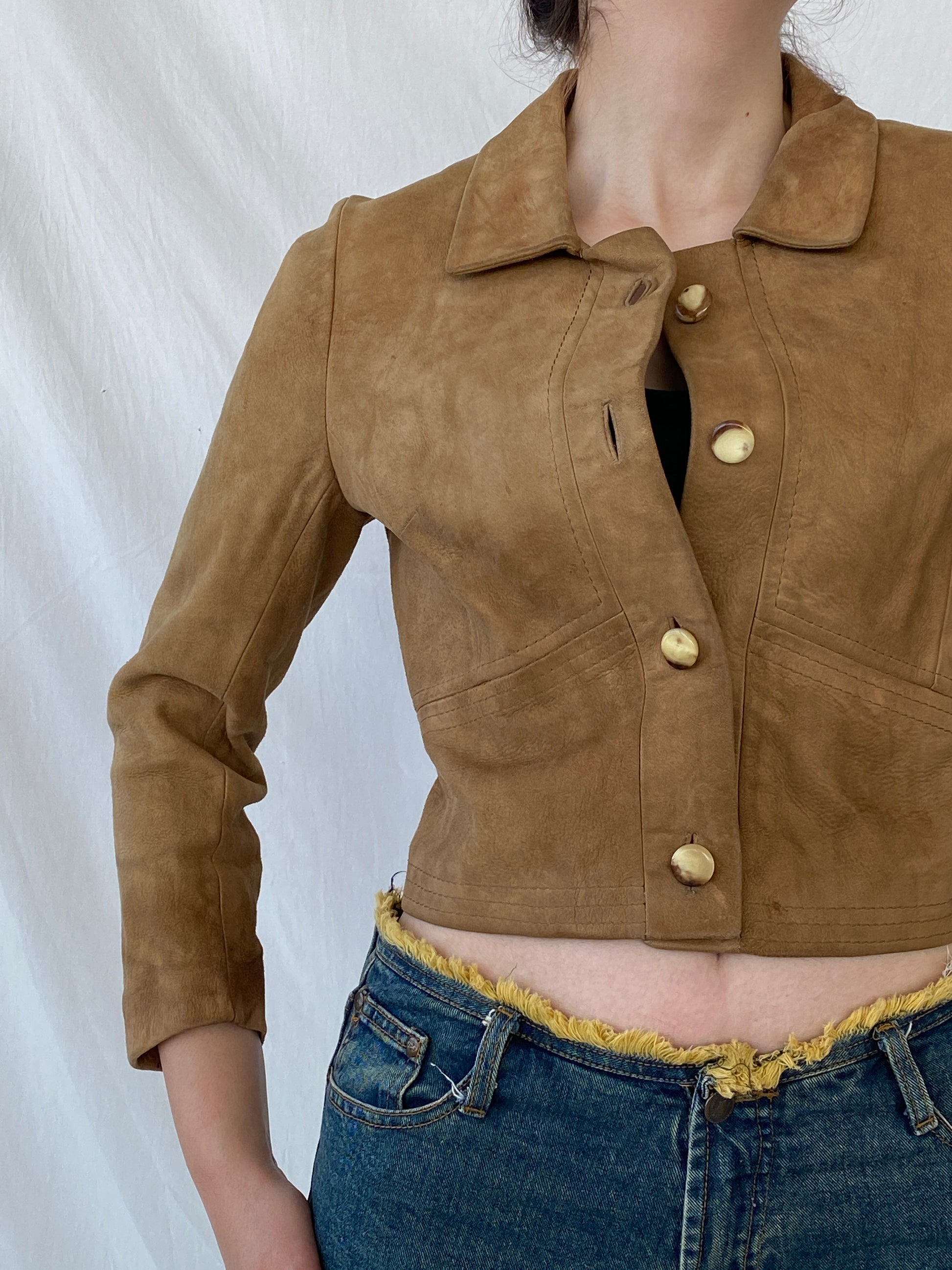Vintage Gnädig Sportmoden Tan Cropped Genuine Suede Jacket - S