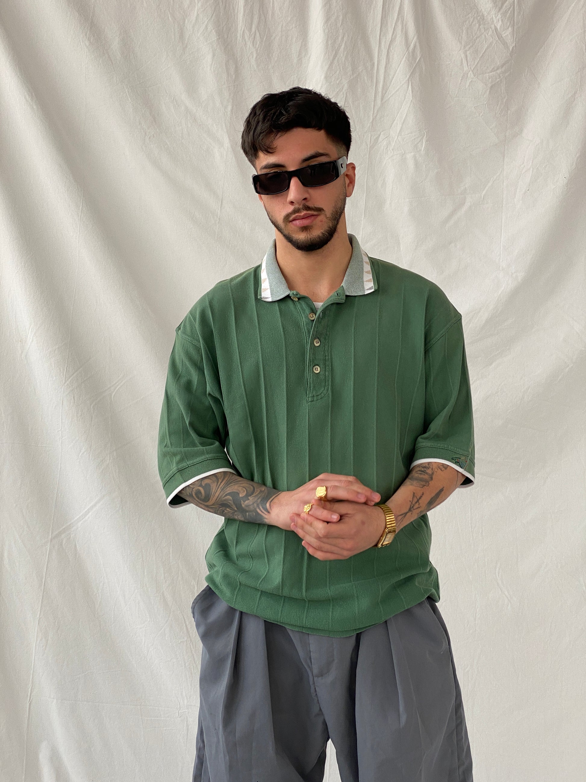 This vintage Greg Norman Collection Men’s Green Polo Neck Golf Shirt is a classic addition to any wardrobe. With a comfortable fit and stylish stripes, you'll look and feel your best.