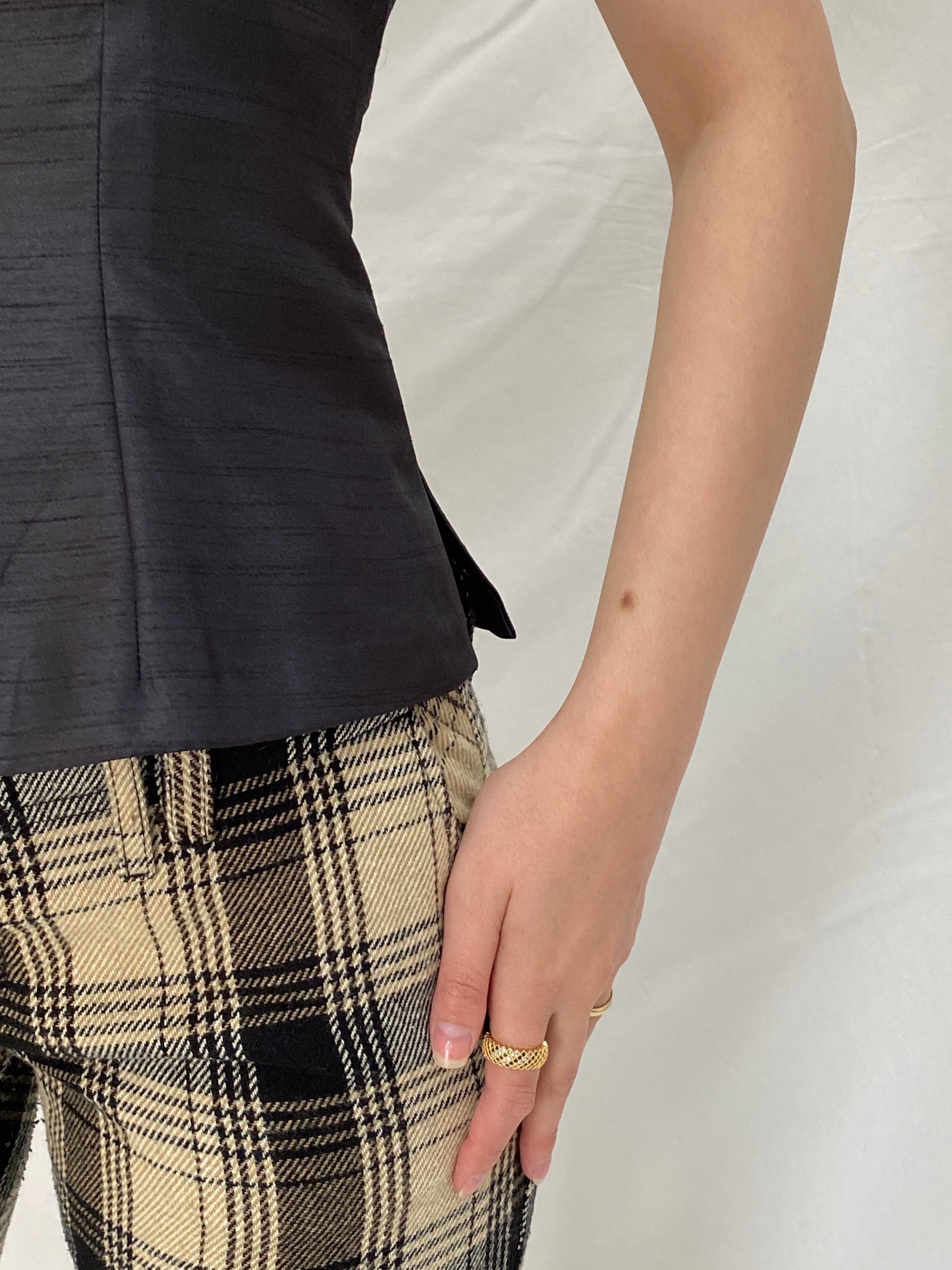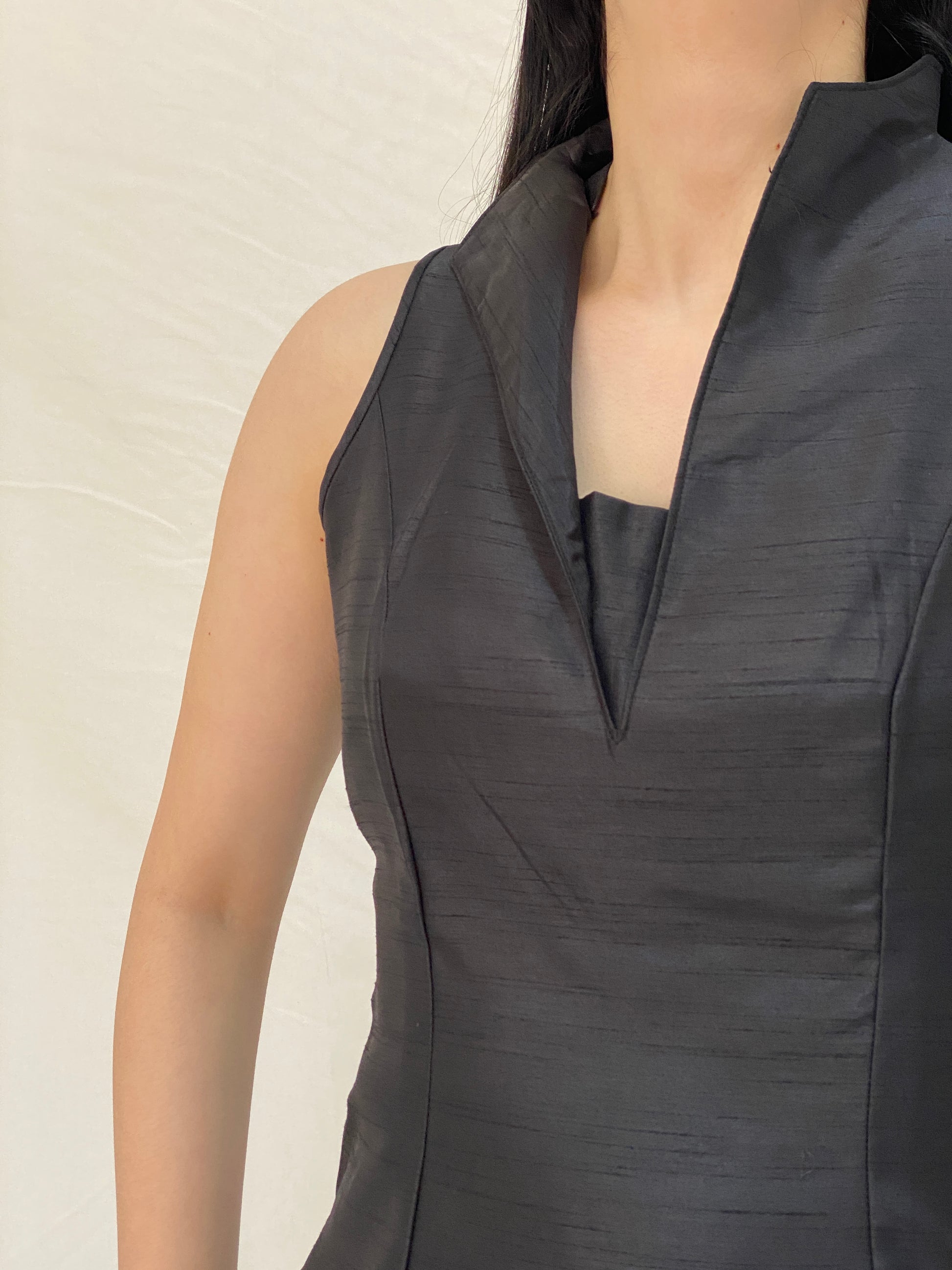 Vintage Handmade Black Satin Structured Sleeveless Tailored Top - S