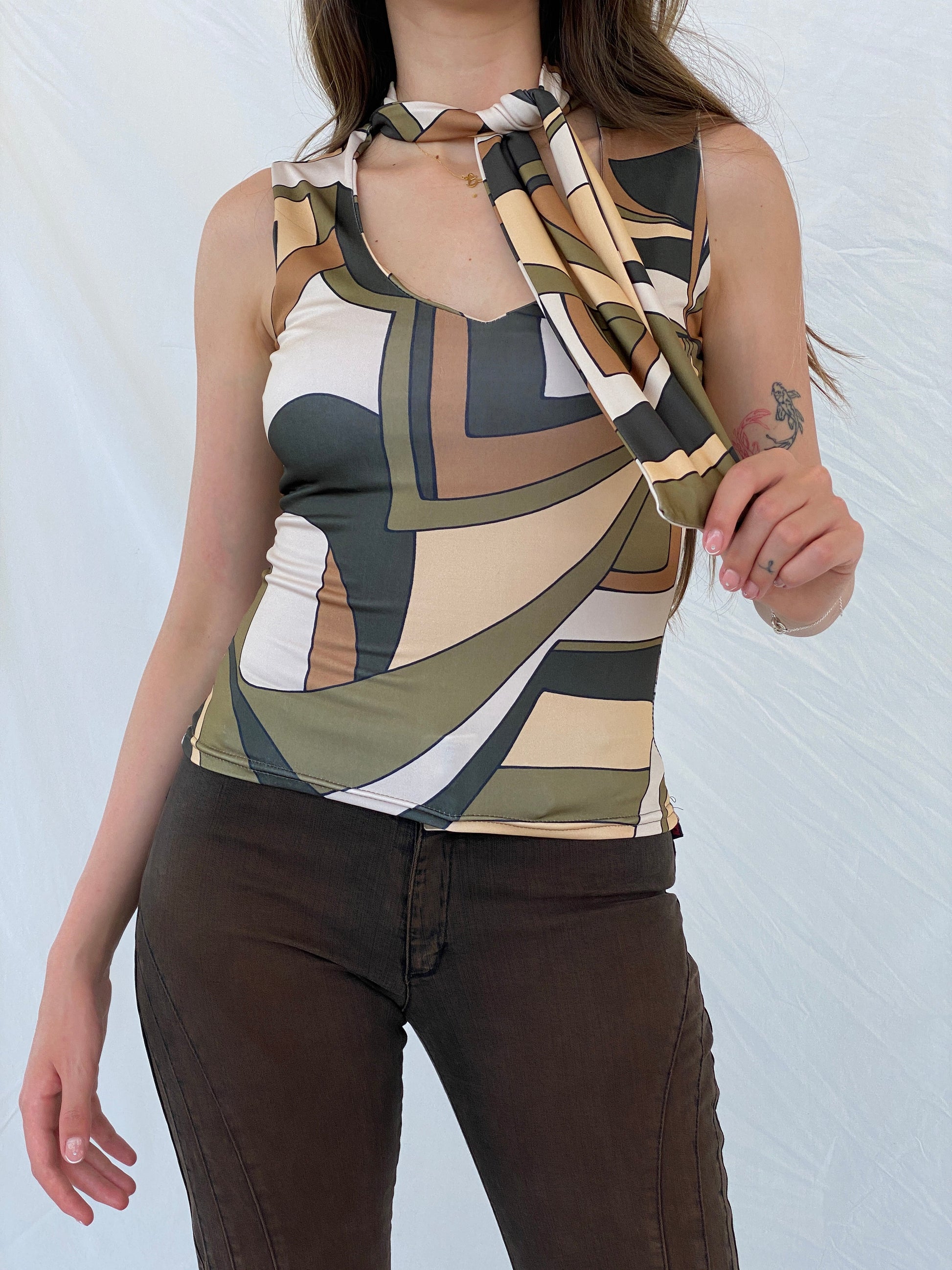 Elevate your style with the Vintage Ici & Maintenant Top. This versatile piece effortlessly pairs with your favorite jeans and mules, making it the perfect addition to any wardrobe. Complete the look with a Nine West shoulder bag for a chic and stylish ensemble.