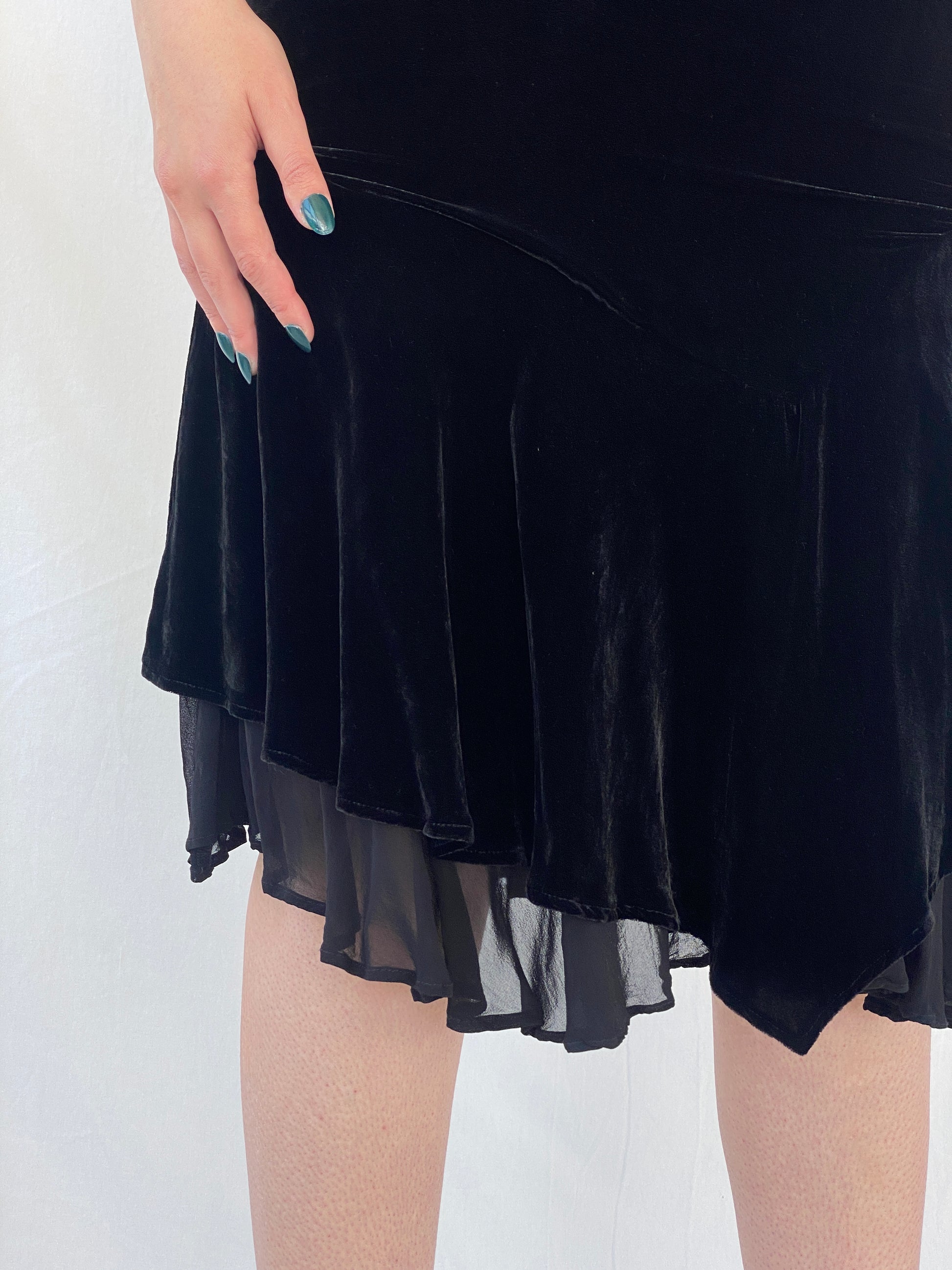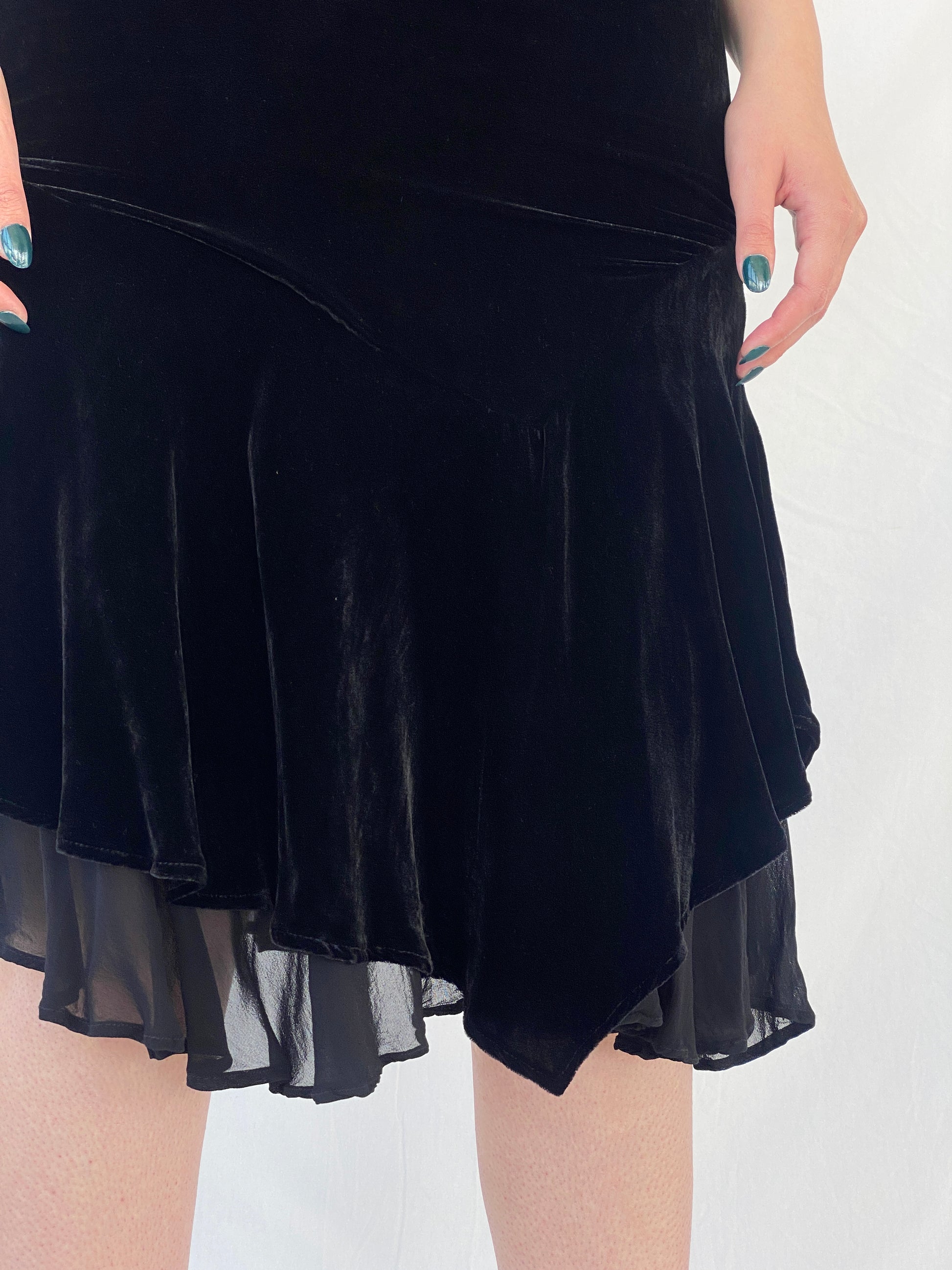 Vintage Jegains Mattiolo Asymmetric Velvet Black Skirt With Sheer Layer - M