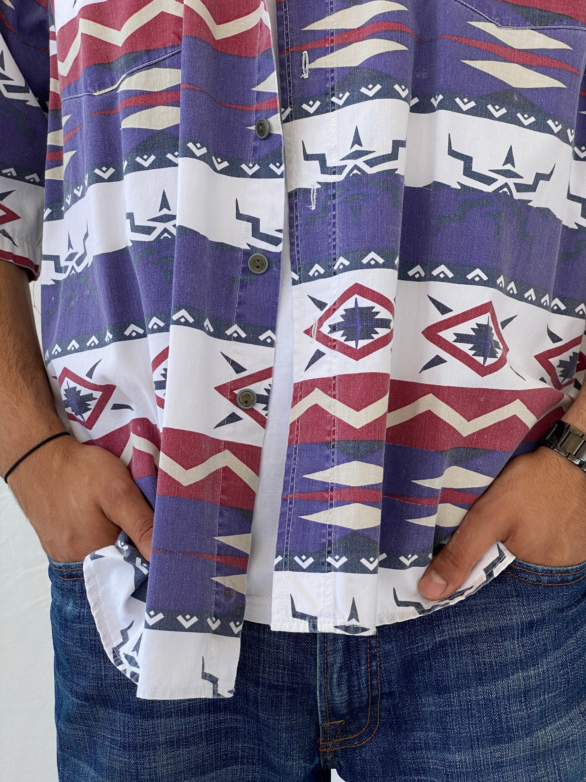 Vintage Mollo Reddot Western Print Men’s Button Up Shirt - XL