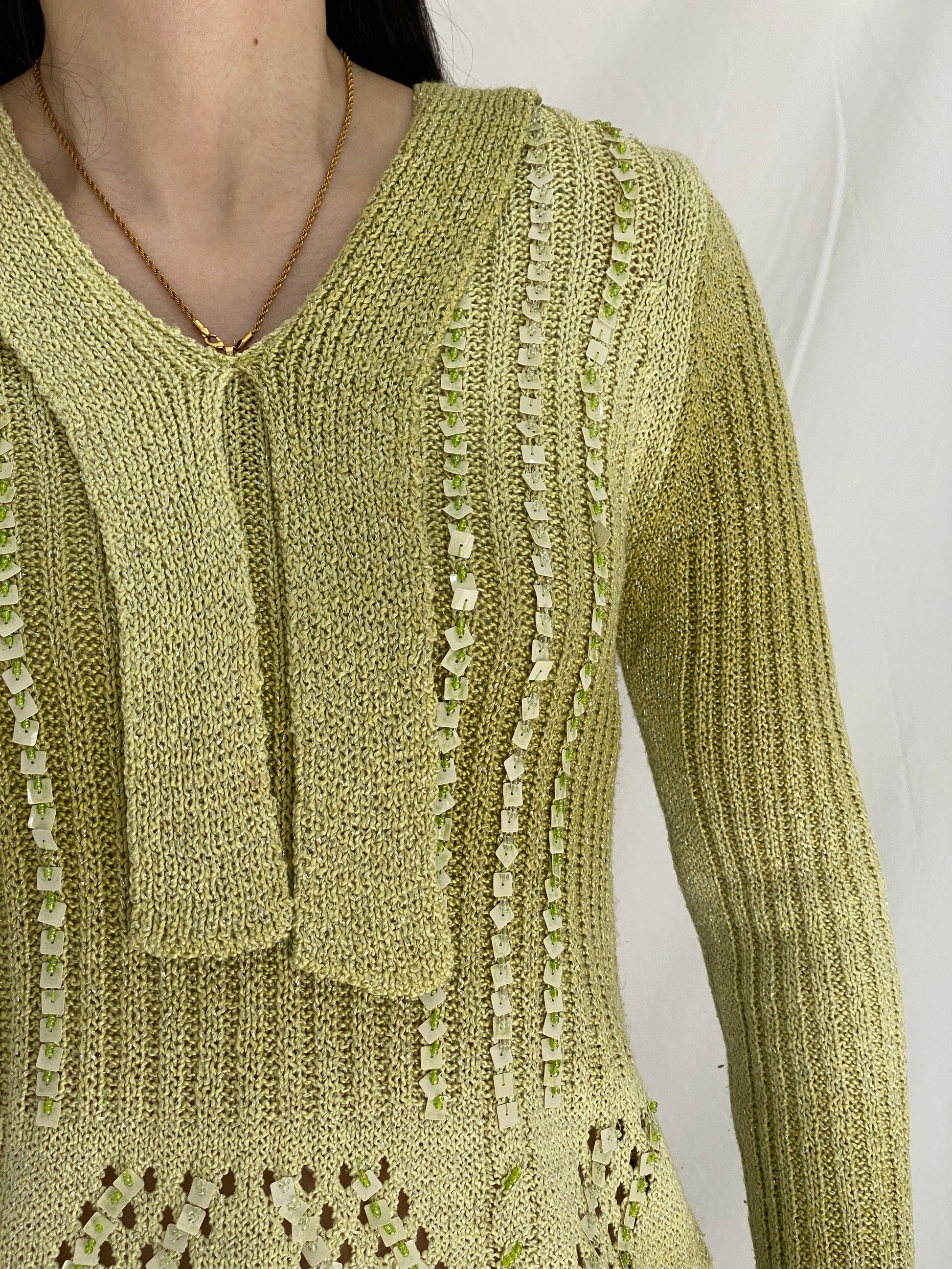 vintage knitted top, beaded knit top, motif knit blouse, pistachio green vintage top, embellished knitwear, vintage beaded sweater, y2k knit top, boho vintage knit, women’s vintage knitwear, balagan vintage top