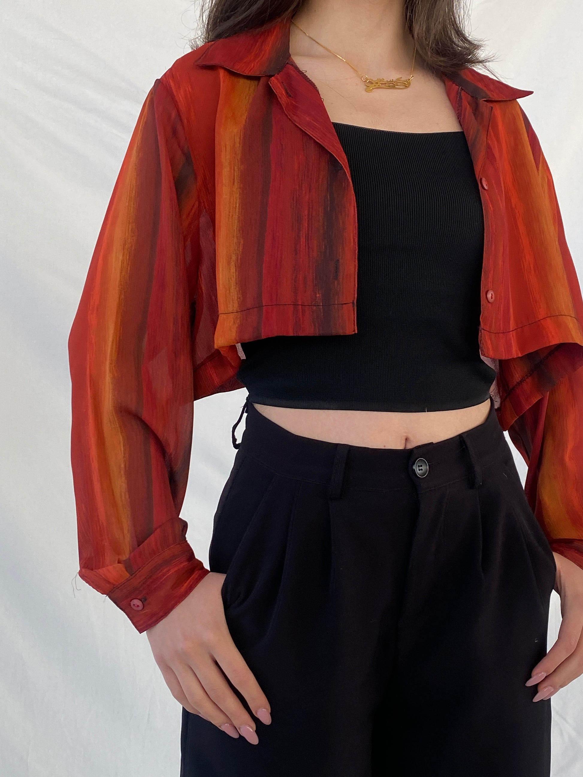 Vintage Notations Cropped Orange Full Sleeve Women’s Shirt - M