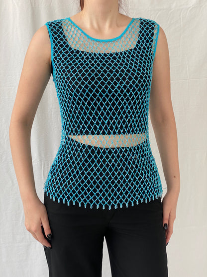Vintage Y2K 2xtremz Women’s Net Beaded Crochet Blue Top - L