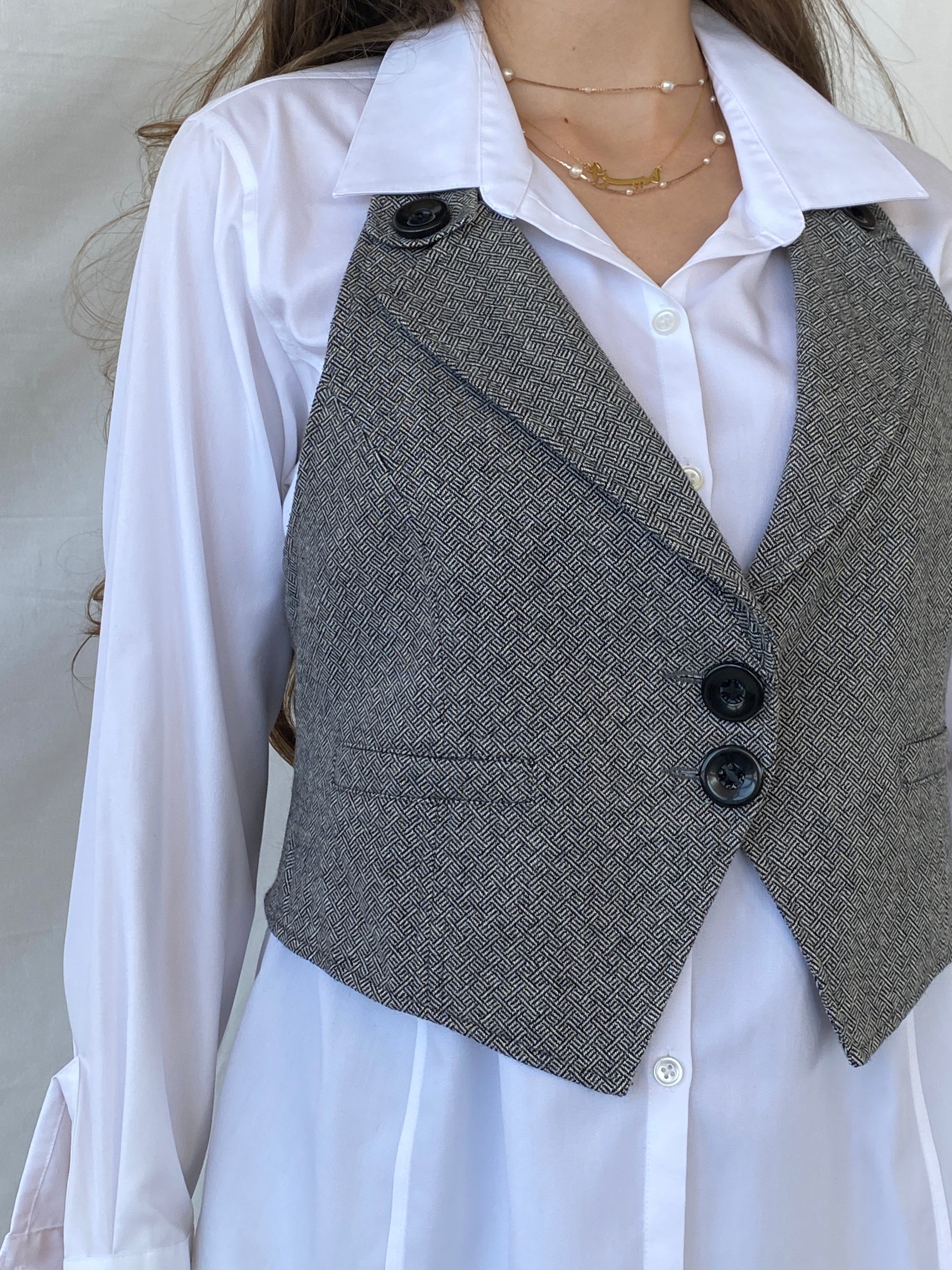 Y2K Broadway NYC Fashion Wool Gray Button Up Cropped Vest - XL