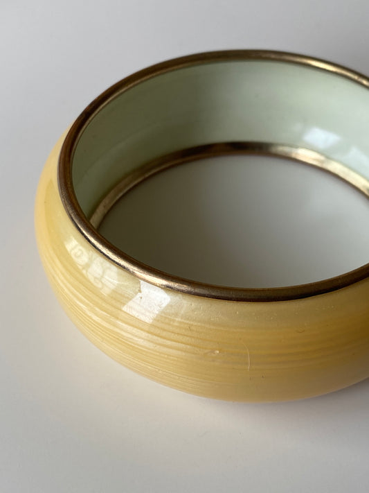 Vintage Yellow Lucite Bangle with Gold-Tone Inlay Mid Century Style Statement Bracelet
